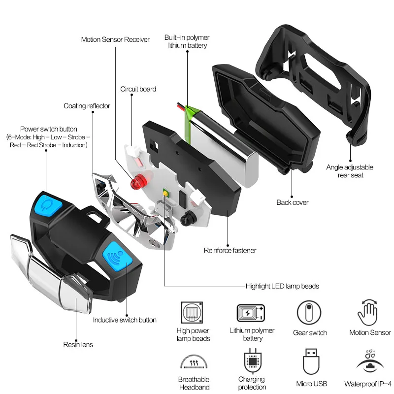 -Моющий сенсор : Этот перезаряжаемый налобный фонарь может быть включен/выключен, развевая руку под режимом датчика движения. Удобно выключить светильник, чтобы не повредить глаза вашего друга в темноте. Головка лампы V800 с красным светодиодным светильник очень яркий, вы можете увидеть детали на расстоянии до 110 метров.