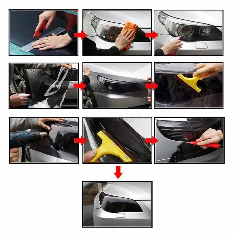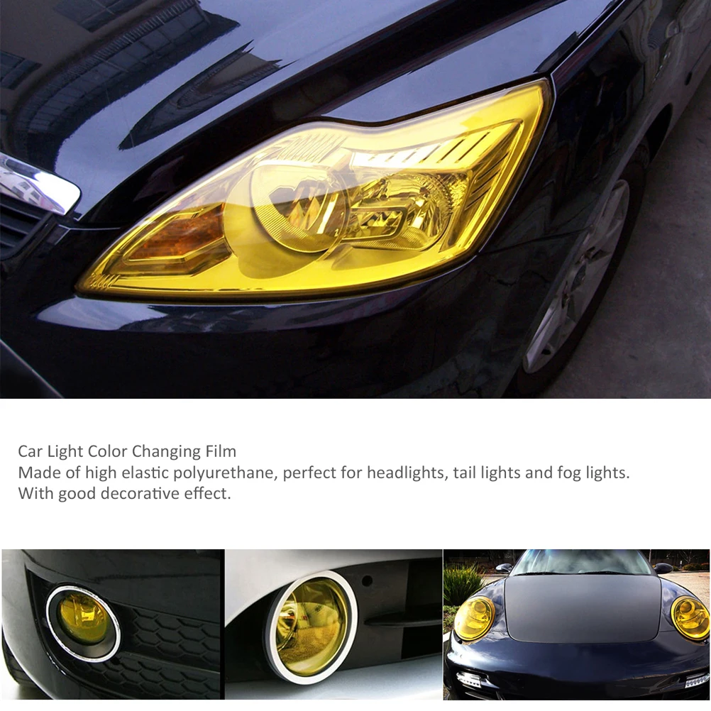 -Материал: долговечный виниловый.1 * FOXNOVO 30*120 см Водонепроницаемая Автомобильная противотуманная фара, оттеночная пленка для фар, меняющая цвет наклейка (желтый)