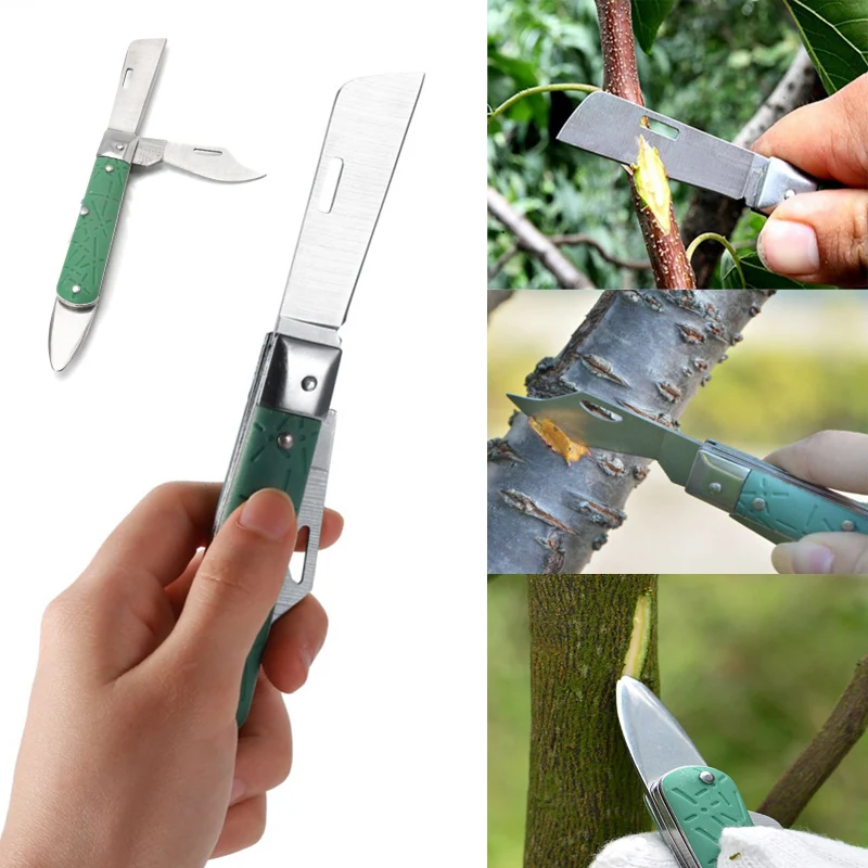 3 в 1 садовый инструмент: изогнутое лезвие, прямое лезвие, подъемник коры