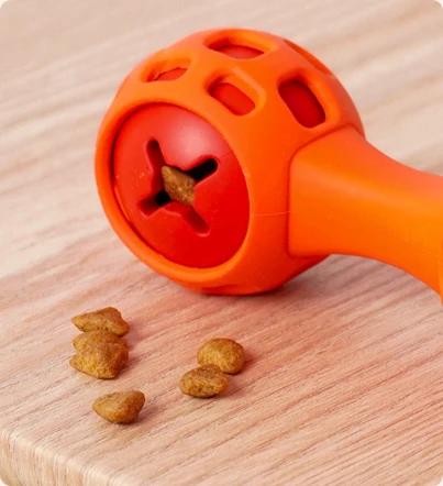 Налейте мяч для жевания игрушек с любимыми угощениями или едой вашей собаки, и он выльется во время игры.