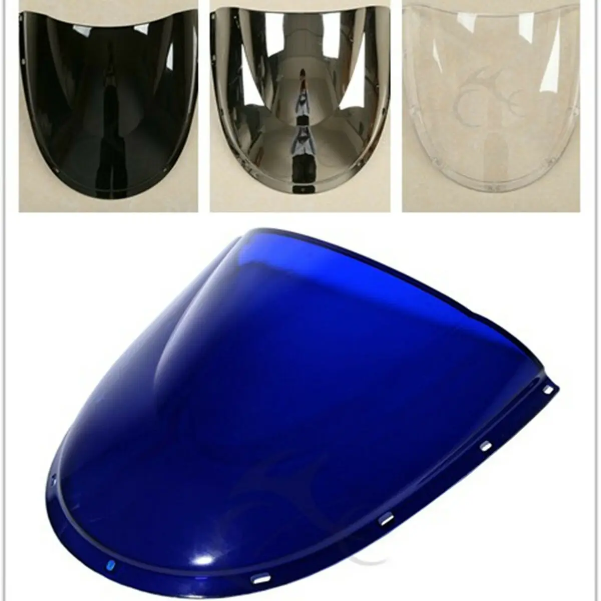 1. Лобовое стекло может защитить любителей мотоциклов от ветра, выброшенных камней, мусора и жуков. Он имеет твердое оборудование, поэтому они стабильны. Ветровое стекло будет отвлекать больше ветра для более комфортной езды, и это делает более расслабляющую и безопасную езду. 2. Высококачественные, высокотехнологичные ударопрочные акриловые ветровые стекла 3. Модифицированный акрил сочетает в себе ударопрочность поликарбоната с устойчивостью к царапинам акрила Спецификация: -Conditon:Aftermarket 100% Новый бренд -Цвет: черный прозрачный синий хром -Тип: двойной пузырь -Материал: высококачественный PMMA