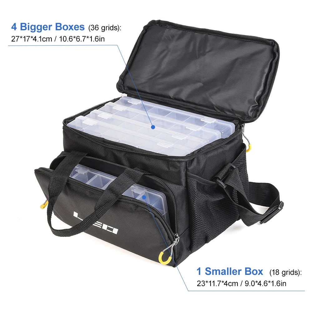 Вместительный основной отсек может держать до четырех полезные коробки (не входят в комплект). Со съемным разделителем, чтобы держать ваши рыболовные снасти организованными.