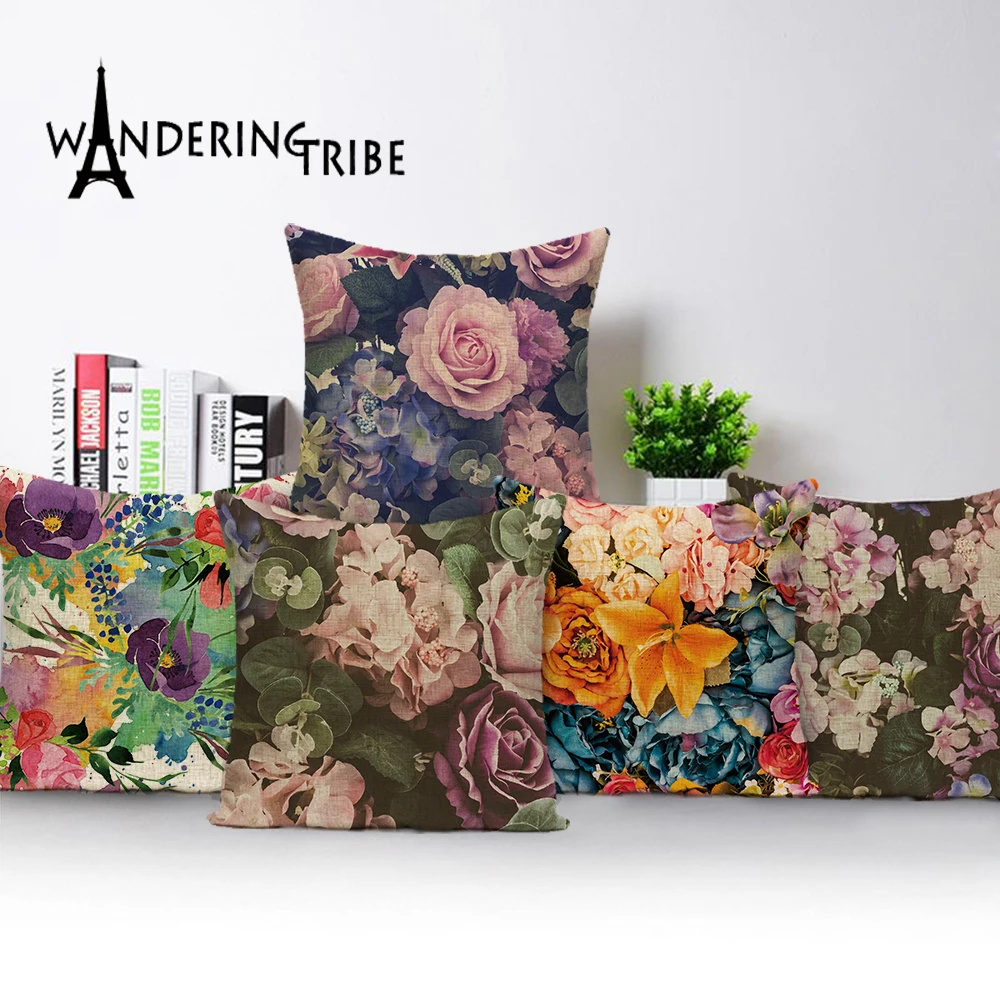 Винтажная Цветочная подушка, чехол для фермерского дома, потертая шикарная декоративная подушка, чехол подушки для домашнего декора, автомобильные подушки, чехол s