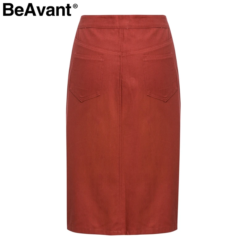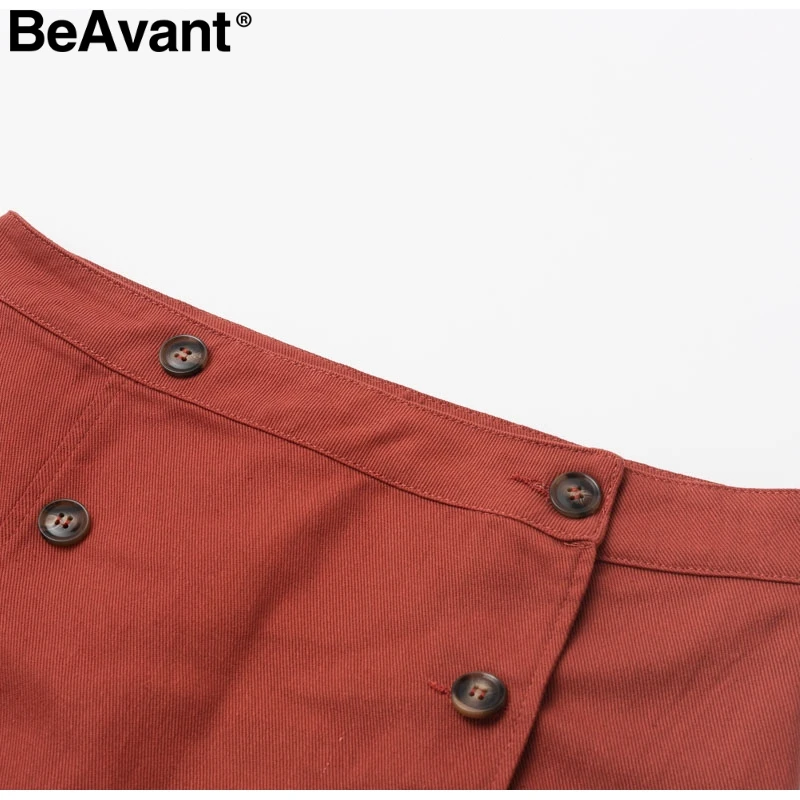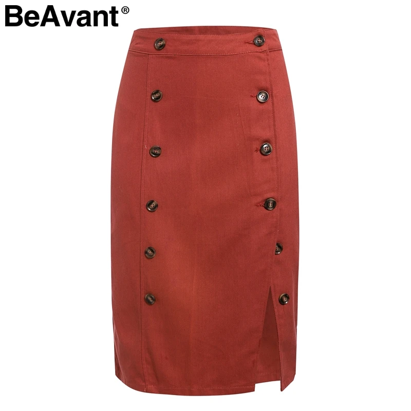 BeAvant элегантная трапециевидная Женская юбка с разрезом, высокая талия, пуговицы, женские осенние миди юбки, повседневные офисные женские хлопковые юбки odycon