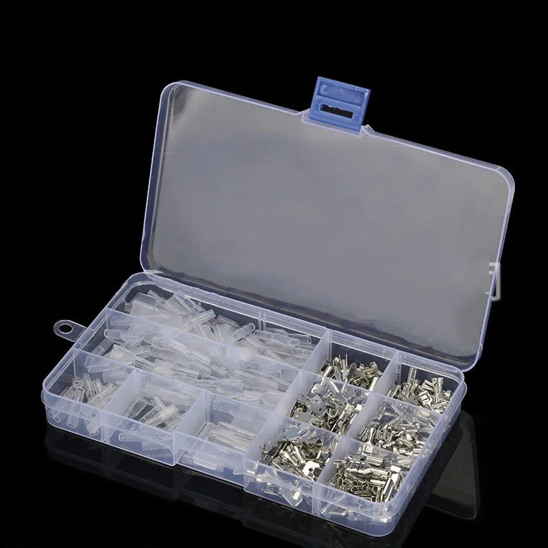6,3 обжимные клеммы провода: Внутренний диаметр: 6,3 мм, толщина: 0,4 мм (папа), 0,8 мм (мама), совместимый провод: 0,75-2.5мм2 (AWG 18-14)