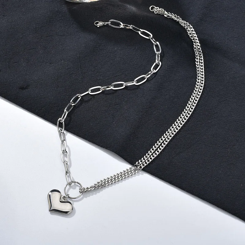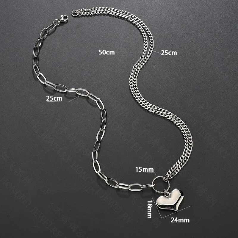 Двойная Цепочка Любовь Сердце Подвески из нержавеющей стали ожерелья для женщин Серебряный цвет день Святого Валентина ювелирные изделия подарок для женщин