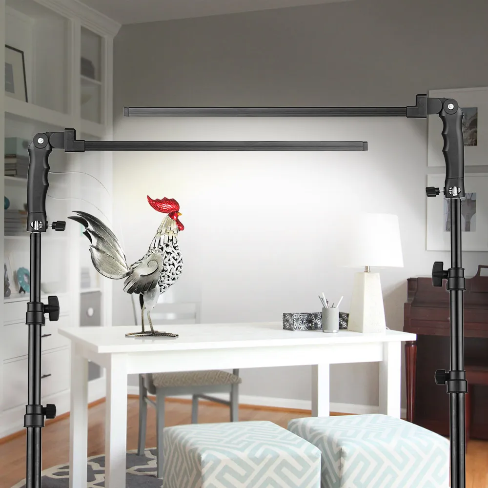 With a extendable aluminium alloy light stand, working height between 66.5cm / 26.2in and 200cm / 78.7in, easy to adjust.