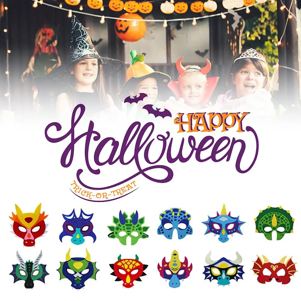 Хэллоуин, 12 шт., фетровая маска дракона, вечерние костюмы с динозавром для мальчиков и девочек