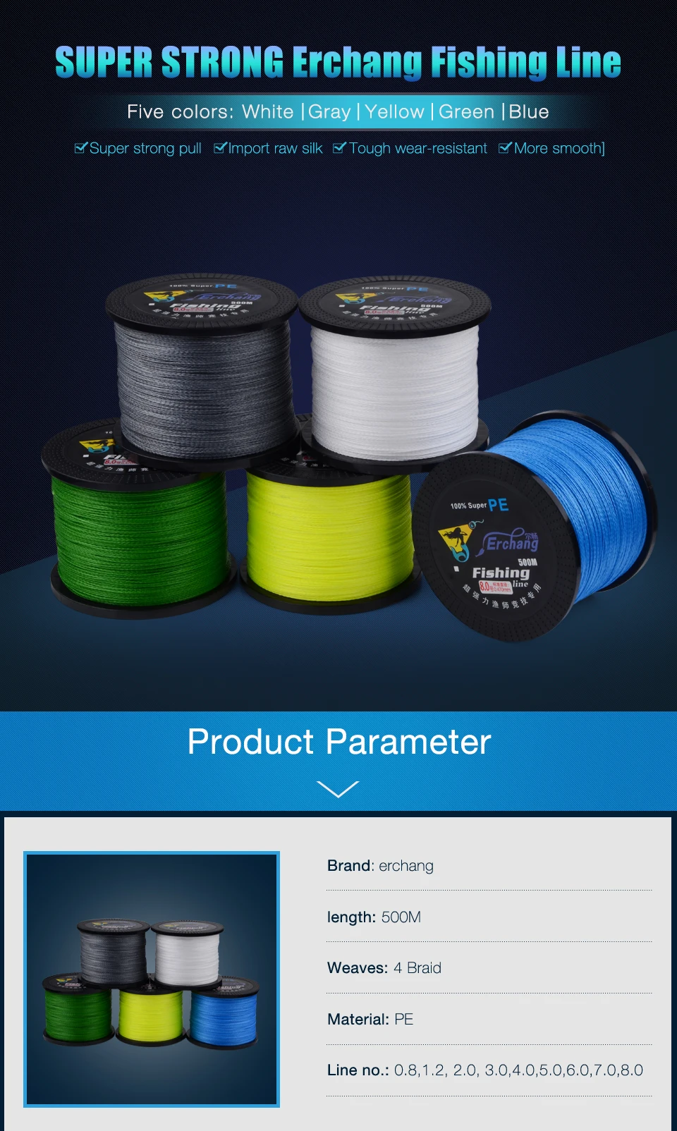 Erchang 500 м 4 пряди плетения лески PE плетеная супер сильная многоволоконная PE плетеная рыболовная леска 10 20 30 40 60LB