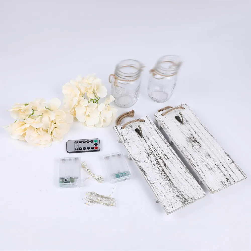 Упаковка: 2 * банка для Мейсона, 2 * цветы (54 9 # оранжевый),2 * гирлянда для лампы (2 м 20 ламп теплый белый),2 * плата, батарея в комплект не входит