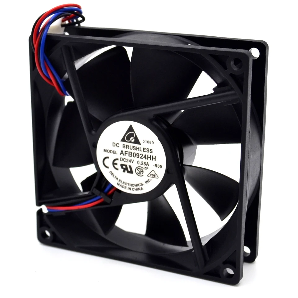 Модель: AFB0924HHРазмер: 92 мм × 92 мм × 25 ммТип подшипника: двойной шарНоминальное напряжение: DC24VТок: 0.25AСкорость: 3200 об/минОбъем воздуха: 58.CFMШум: 38dBA