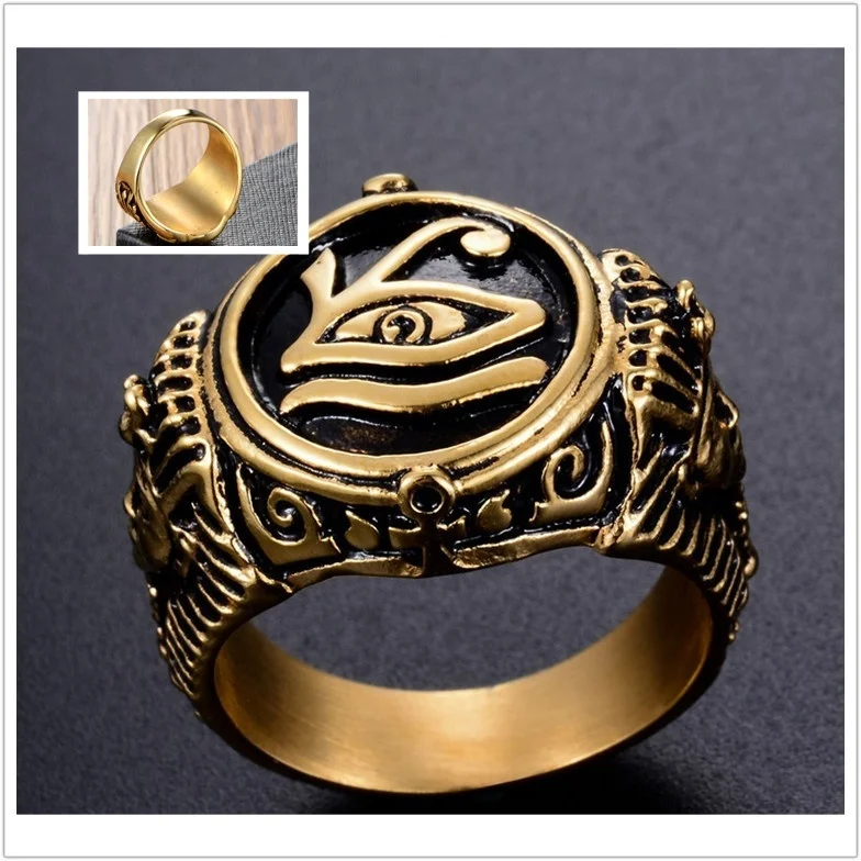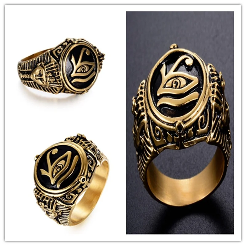Египетский Глаз Фараона Хоруса мужское Золотое серебряное кольцо из металлического сплава Винтаж хип-хоп подарок Ankh крест кольцо амулет