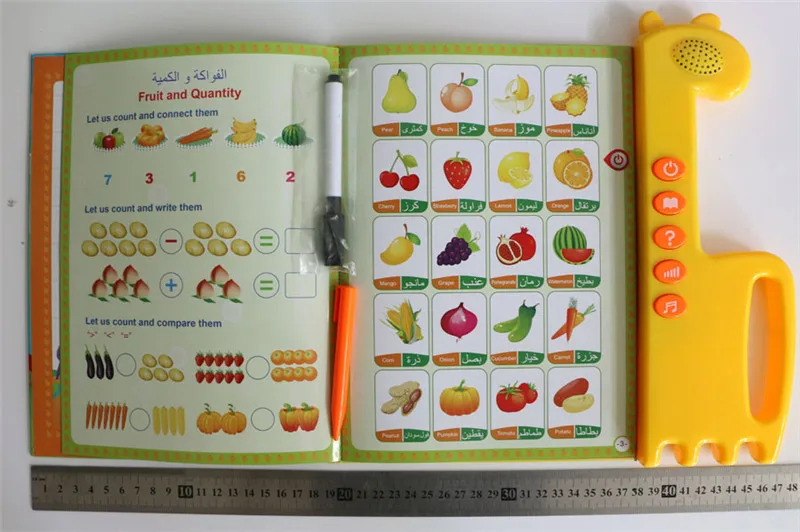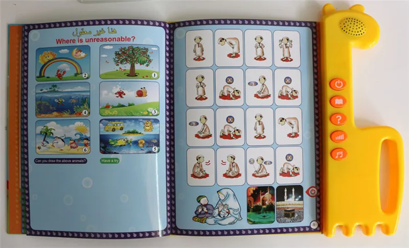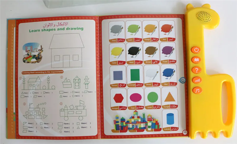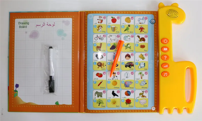 Арабское обучение, обучающая машина для чтения голоса, книга, интеллектуальная ручка для чтения, дети, обучающая игрушка, язык Обучающая машина для чтения голоса, умная Интеллектуальная Детская обучающая Арабская история, игрушки, сенсорное управление пальцами Аккумулятор: аккумулятор (не входит в комплект) Посылка: 30*30*3 см Это высококачественный АБС-пластик и экологически чистый материал для детей, без неприятного запаха. Очень безопасный для ребенка. Лучший для детей, очень хороший подарок для образования С музыкальным и животным дизайном. Материал: пластик Цвет: желтый С дизайном 2 ручек, 1-сенсорная ручка, 1-ручка для рисования водой, может быть стирается после рисования. Упаковочный лист 1 шт. арабское образовательное устройство для чтения голоса