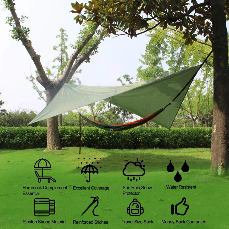 3. Можно использовать в качестве рюкзака для палатки, брезента для дождя, Теневого брезента для пляжа/парка, гамака для дождливой мухи, коврик для пикника, пляжное одеяло для Луг, простая палатка. Вы можете накрыть Гамак или снаряжение для кемпинга, велосипед, снаряжение, одежду, барбекю, уличная кухня или даже собака!