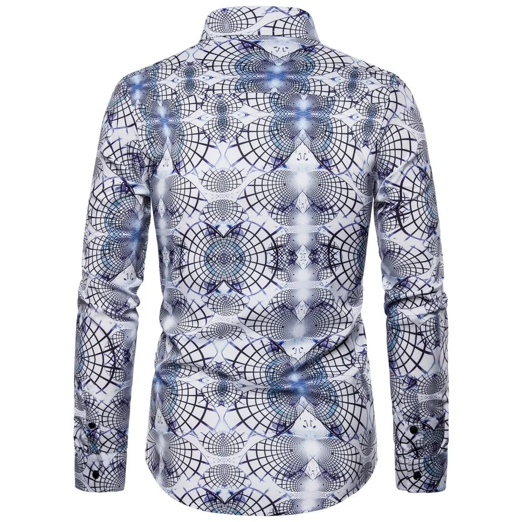 Мужская повседневная цветная приталенная рубашка с длинным рукавом и 3D-принтом