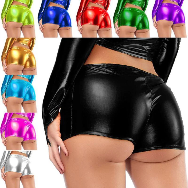 * Описание товара:Женские блестящие кожаные микро-шорты для мальчиков, нижнее белье, трусы, штаны для танцев