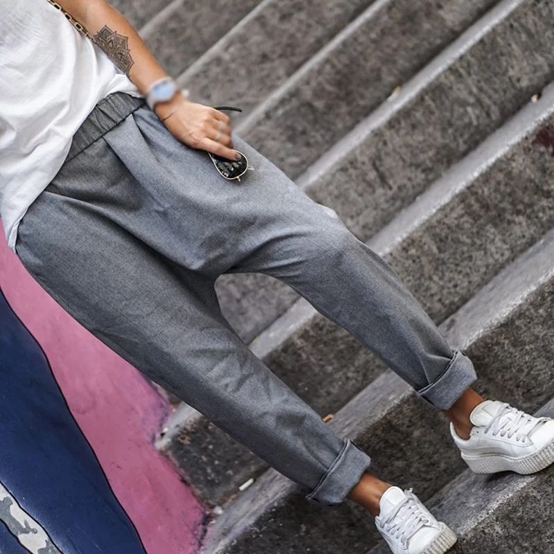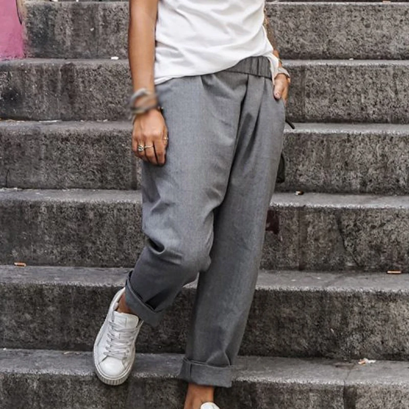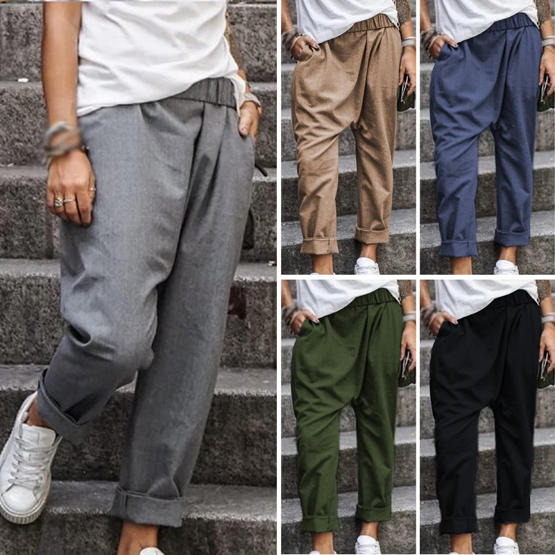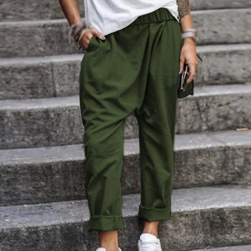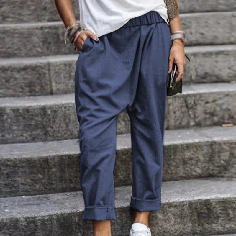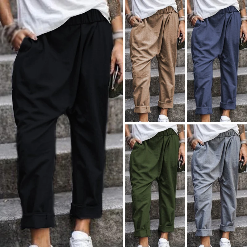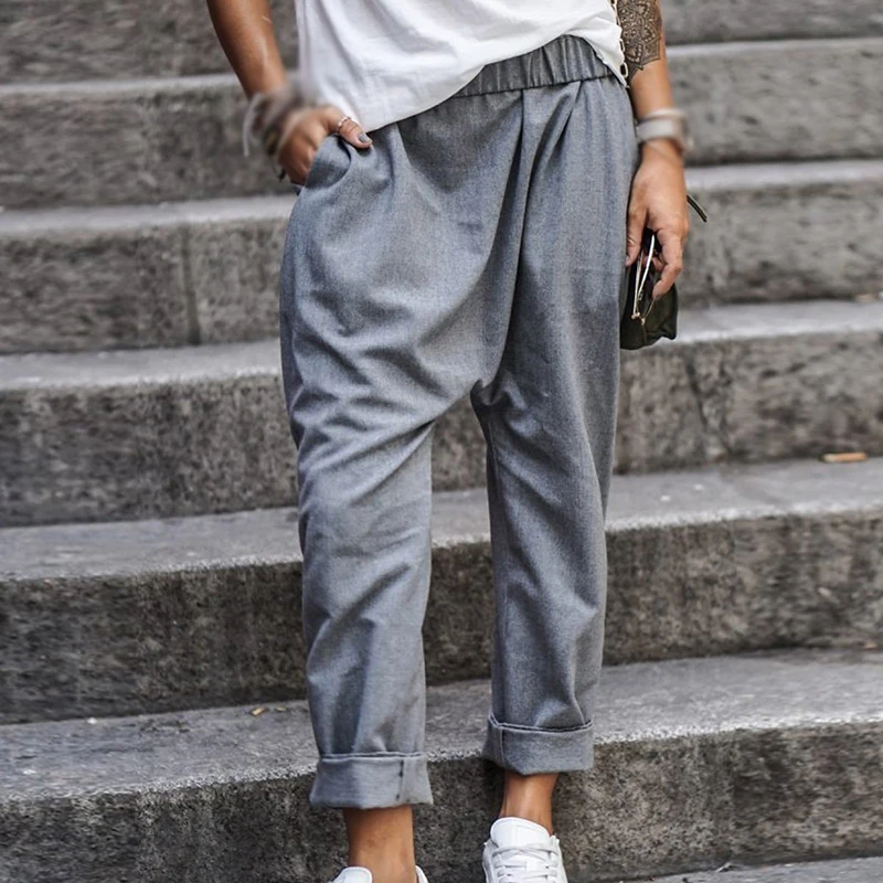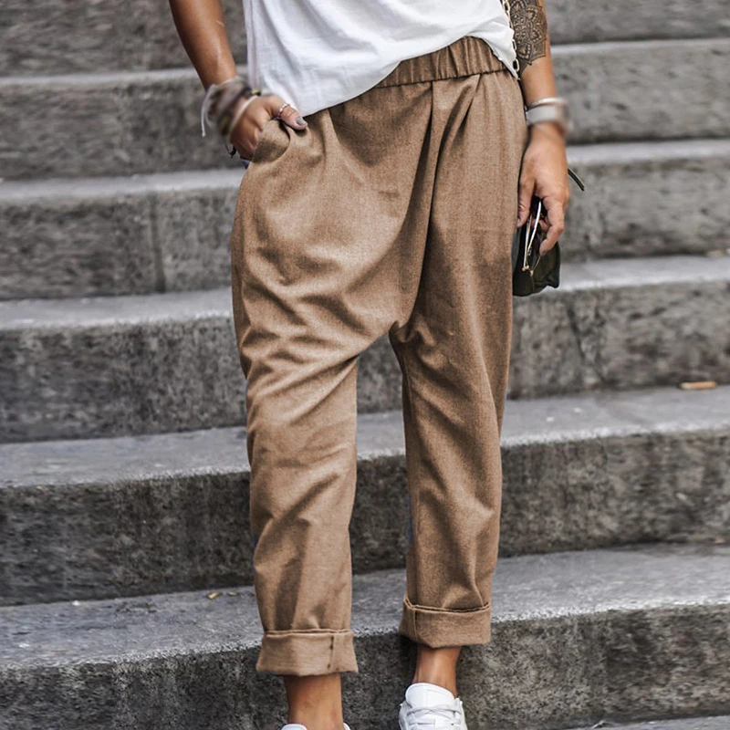 * Описание товара: свободный; плюс размер; Повседневный; карман; эластичная талия; шаровары; брюки