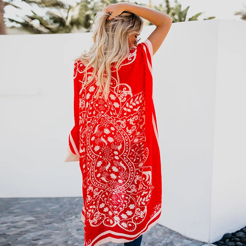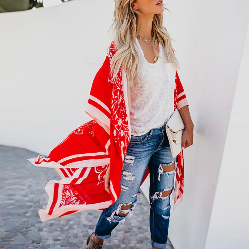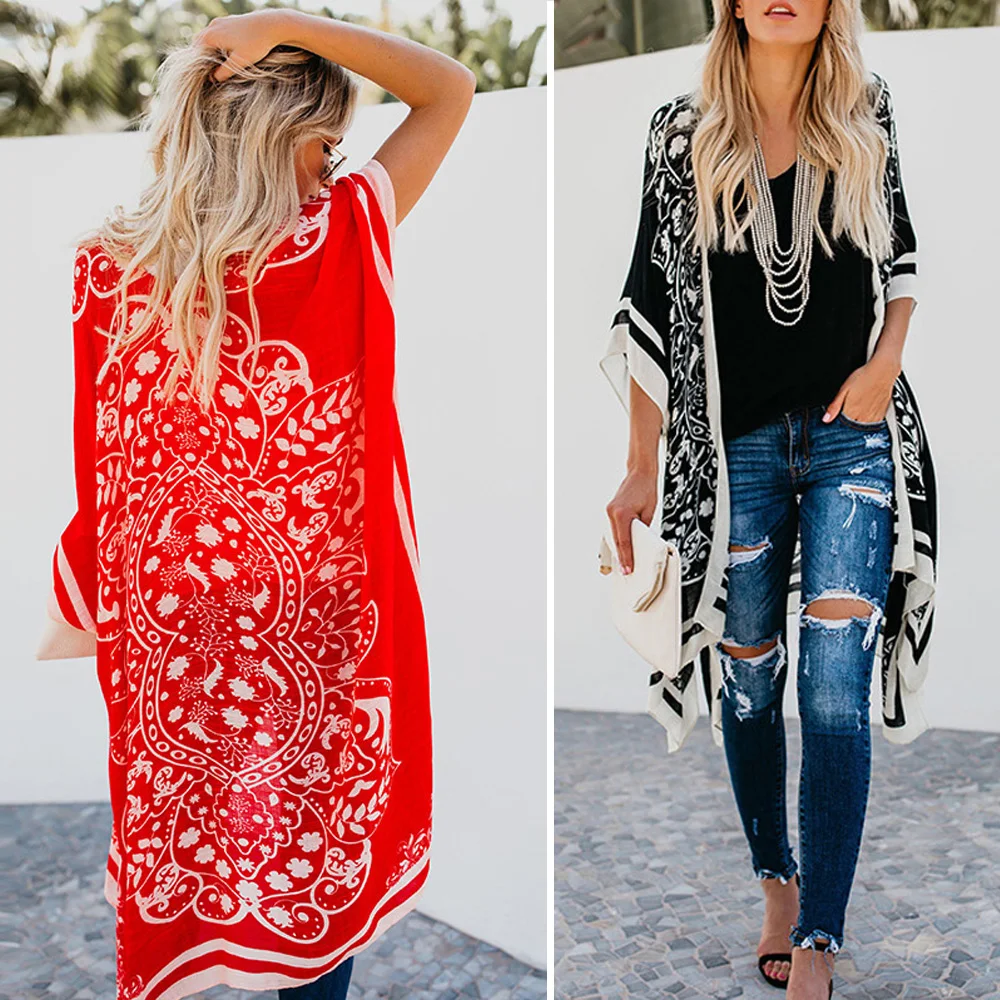 * Описание товара:Женская одежда, летний Ретро комбинезон, шаль пальто, печатный, свободный, рукав летучая мышь, пляжный праздник