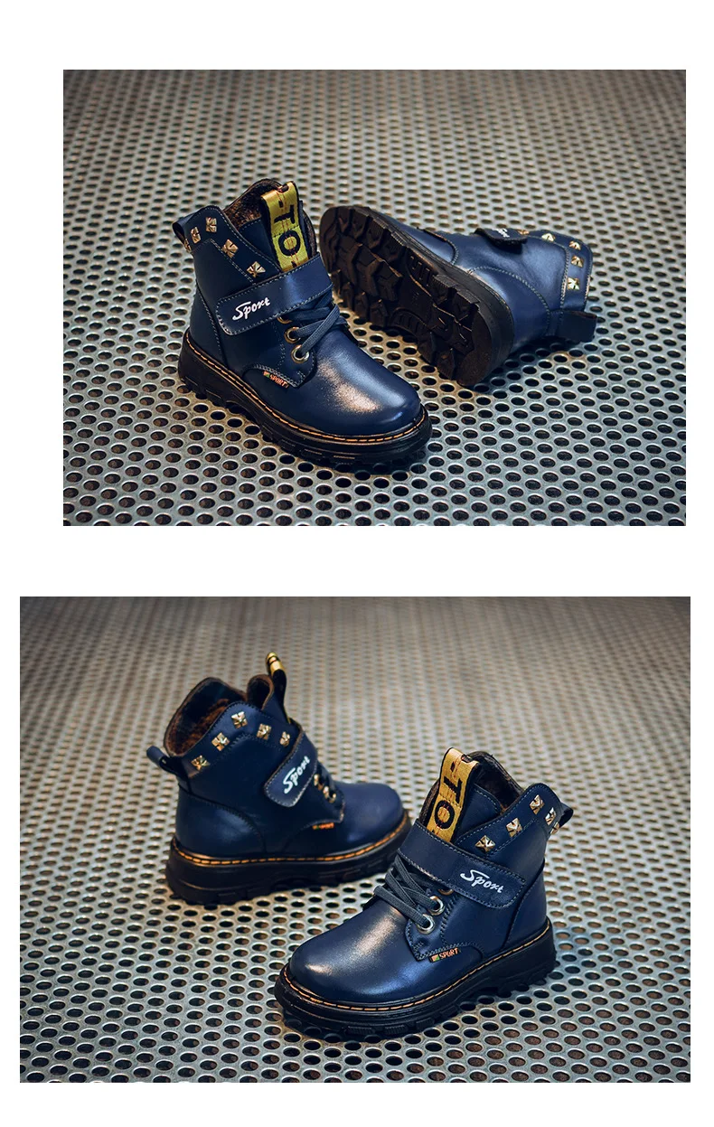 Детские кроссовки; Сезон осень-зима; Школьные ботинки из натуральной кожи для мальчиков; Зимние сапоги до середины икры; Плюшевые теплые водонепроницаемые детские ботинки Martin
