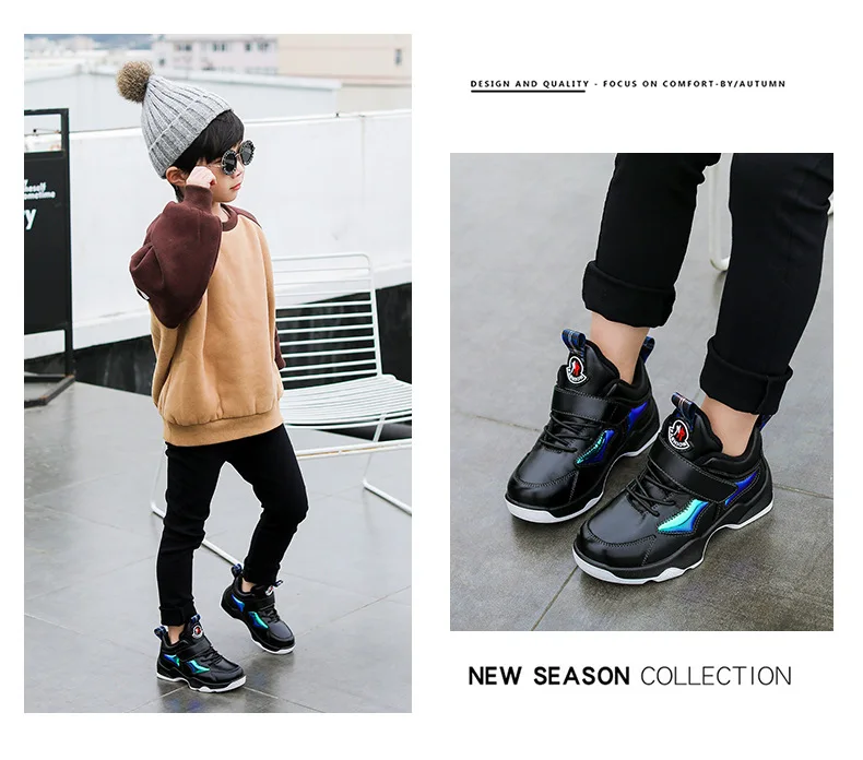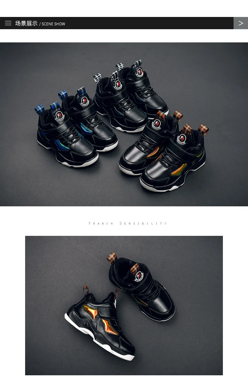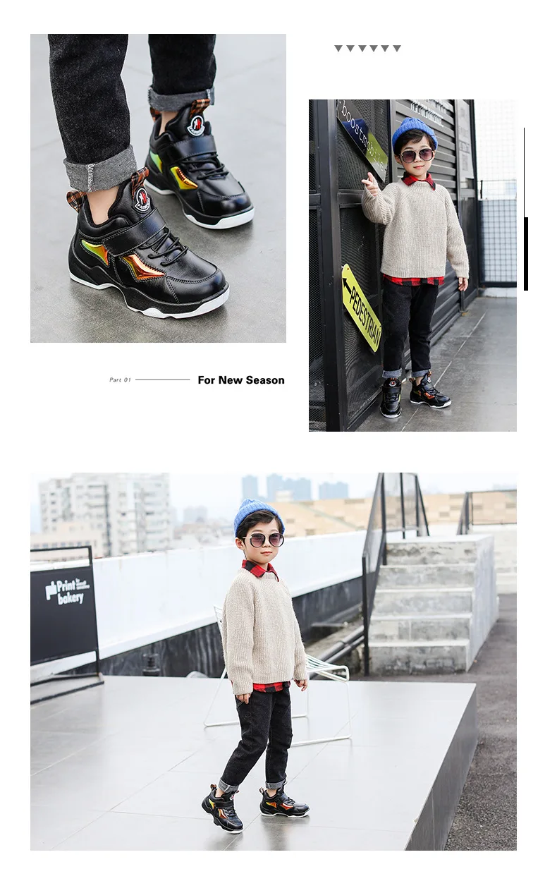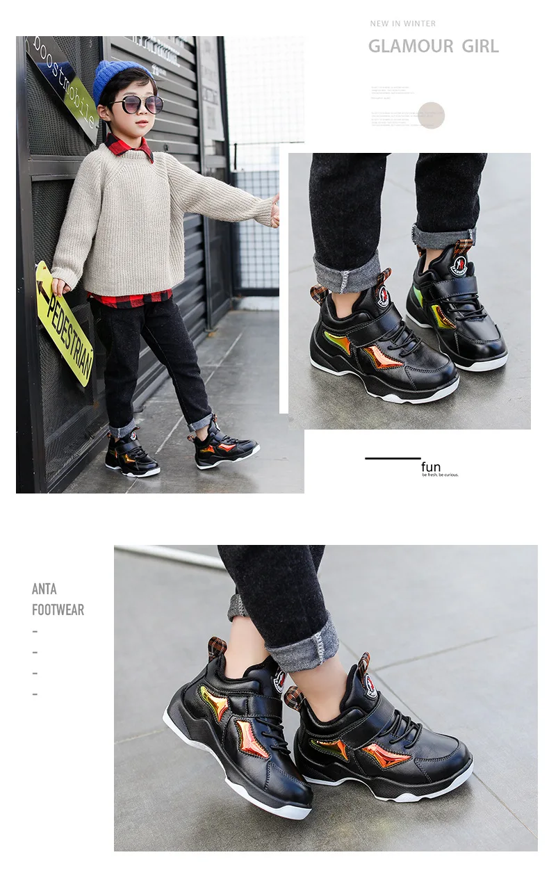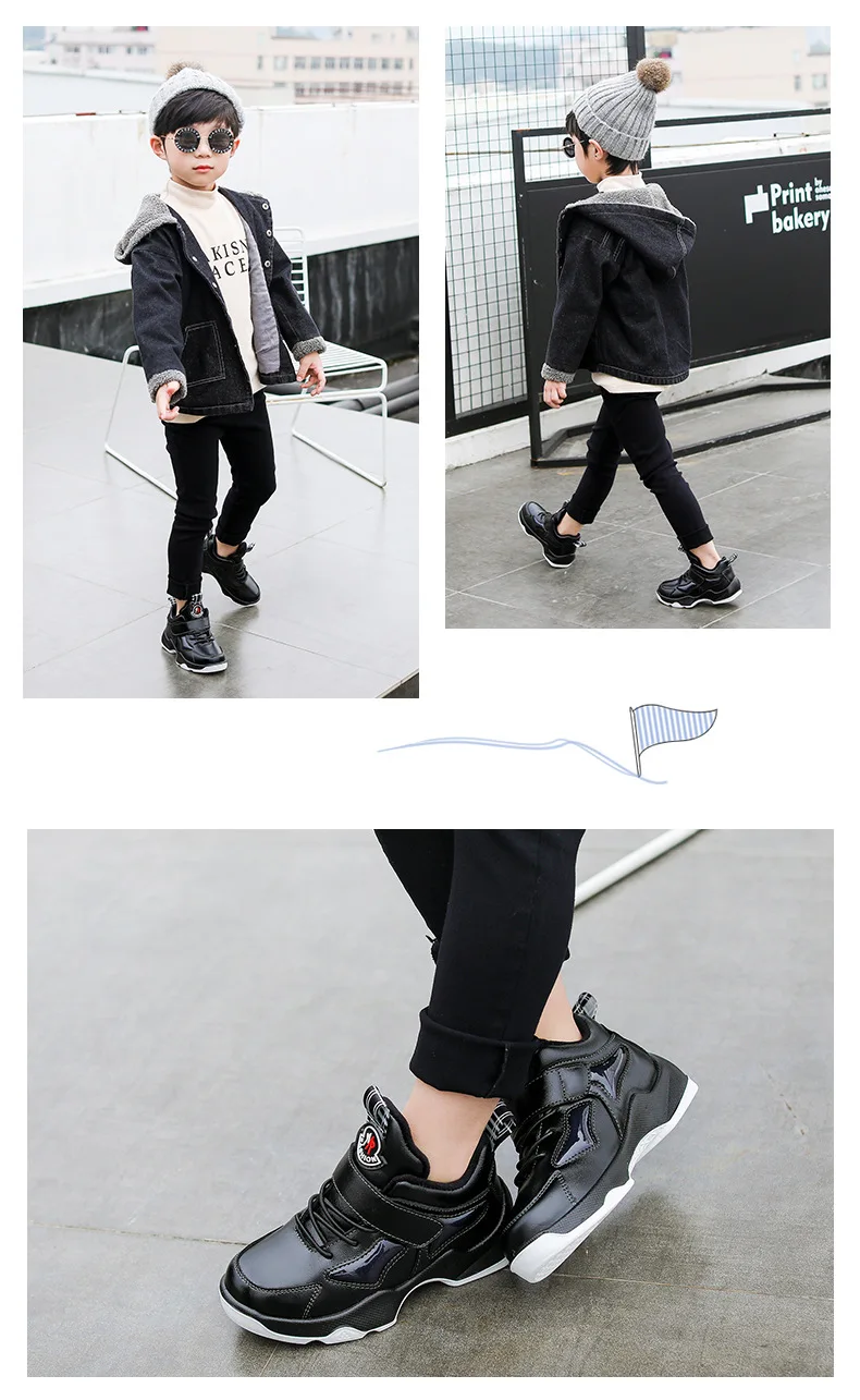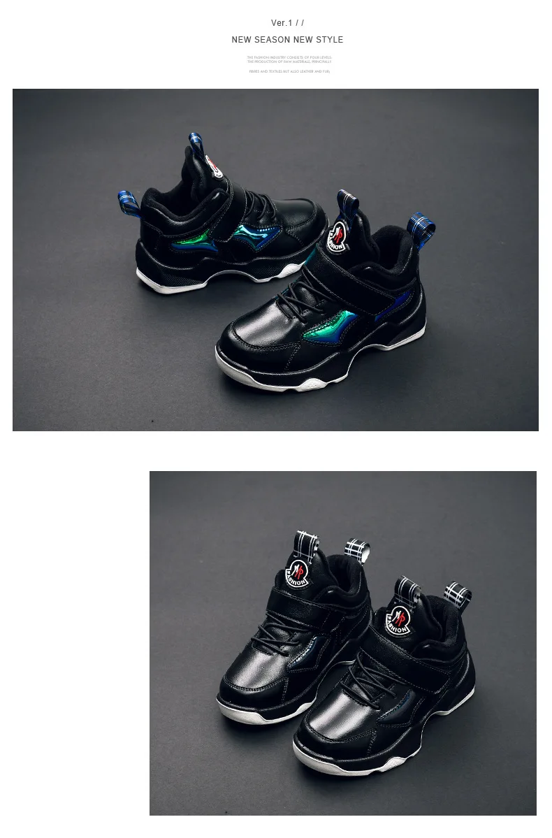 Детская зимняя обувь; Водонепроницаемые ботинки Martin; Детские ботинки из натуральной кожи для мальчиков; Спортивные кроссовки; Зимние ботильоны; Теплая плюшевая обувь на плоской подошве