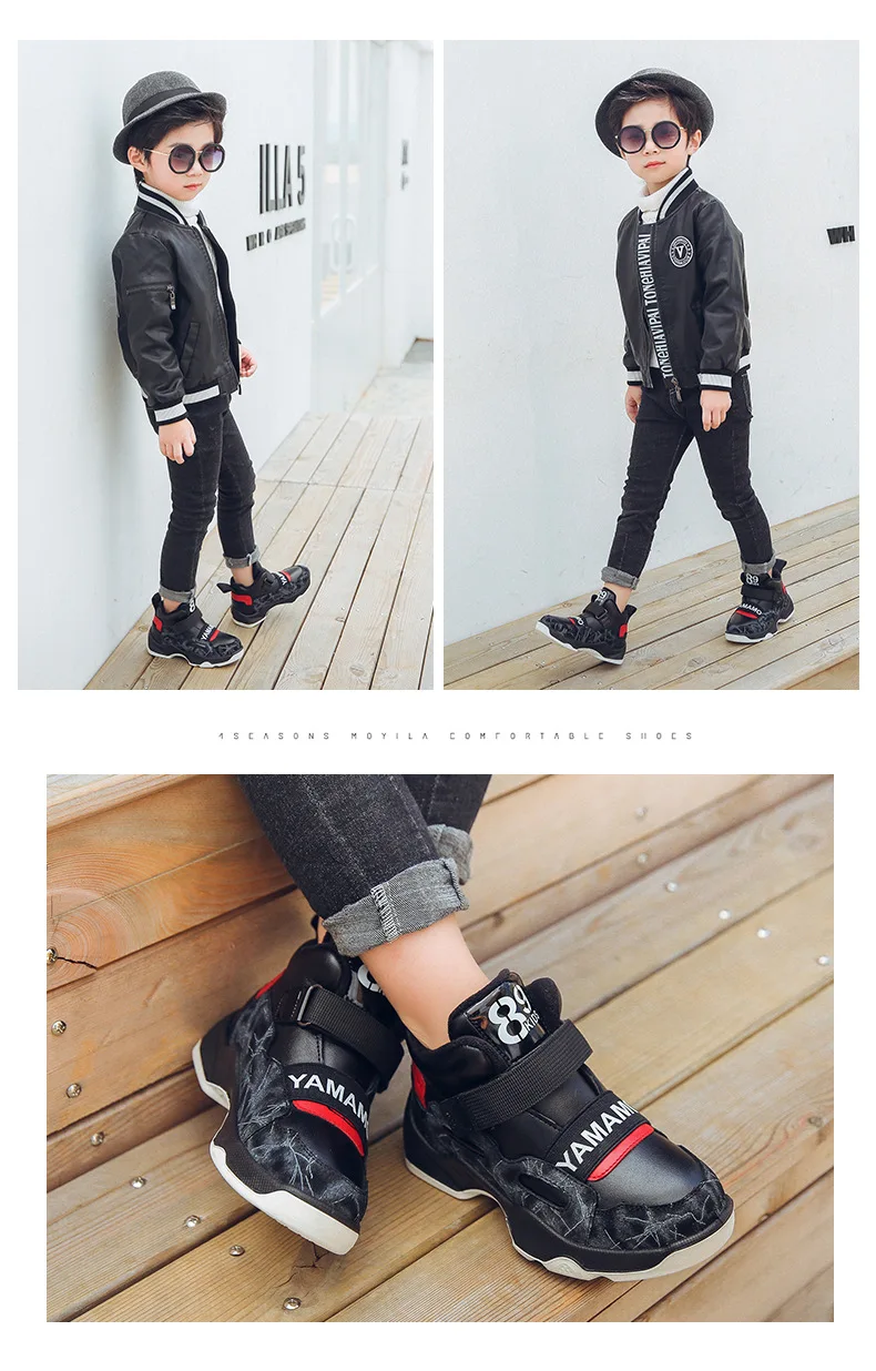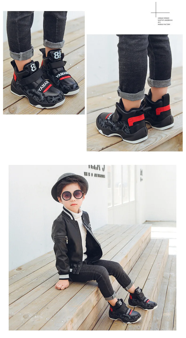 Новые зимние ботинки для мальчиков; Детская обувь; Модные Детские Ботинки Martin из натуральной кожи; Кроссовки на плоской подошве для студентов; Теплые плюшевые зимние ботинки для детей