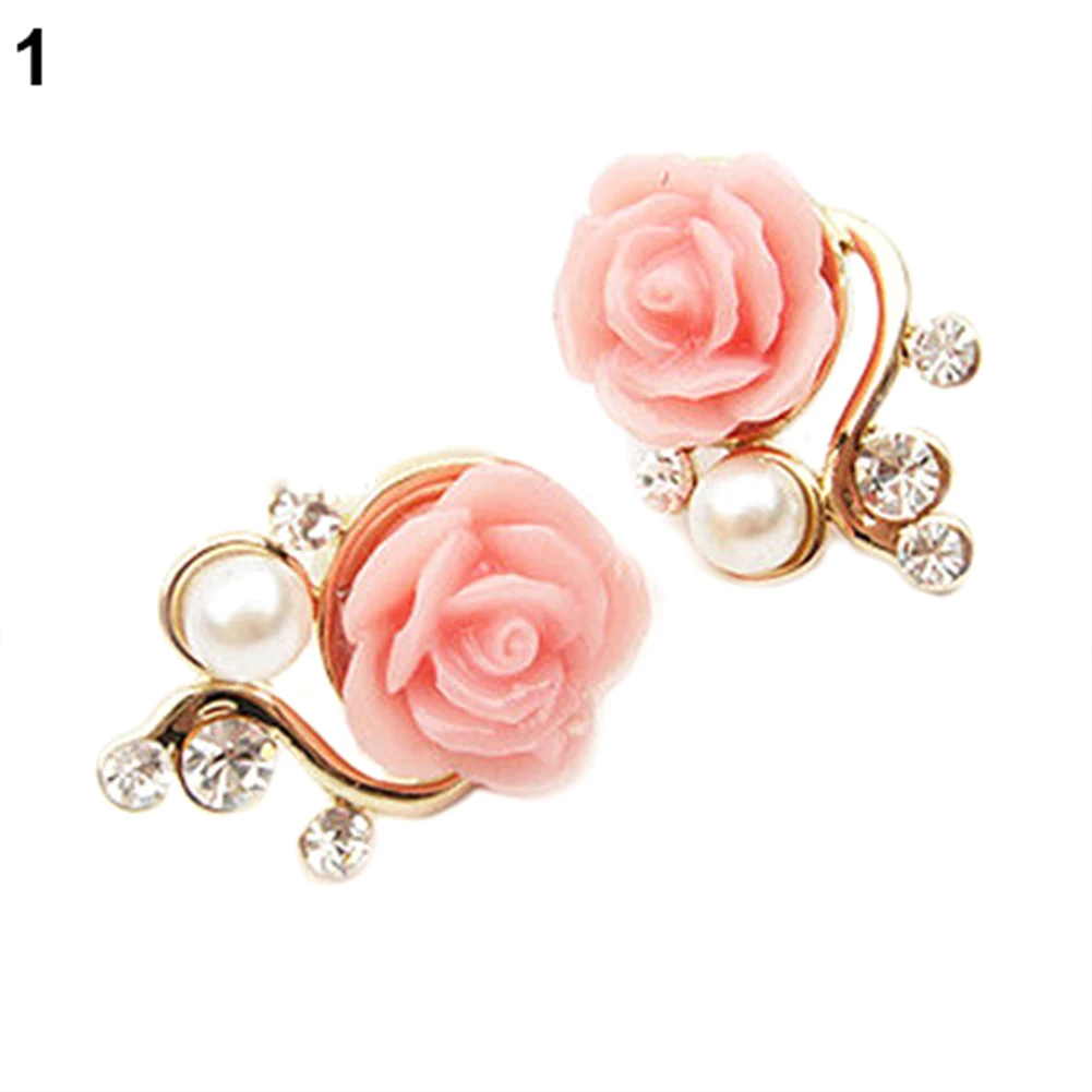 1 пара, женские серьги-гвоздики в Корейском стиле, блестящие стразы из розового сплава, искусственный жемчуг, серьги-гвоздики, ювелирные изделия, Женские аксессуары