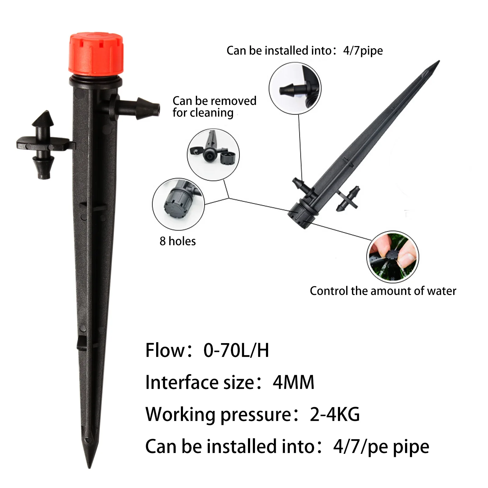 100% новый и высококачественный С 1/4 'кол, чтобы подключить к земле и удерживать сопло на месте. Рассеивающий спрей, 8 розеток. Можно отрегулировать для потока путем скручивания сопла. Можно скрутить, чтобы выключить. Кепка съемная для легкой чистки. Поставляется со встроенным барбом, так что вы можете легко подключить капельная трубка 1/4 '.