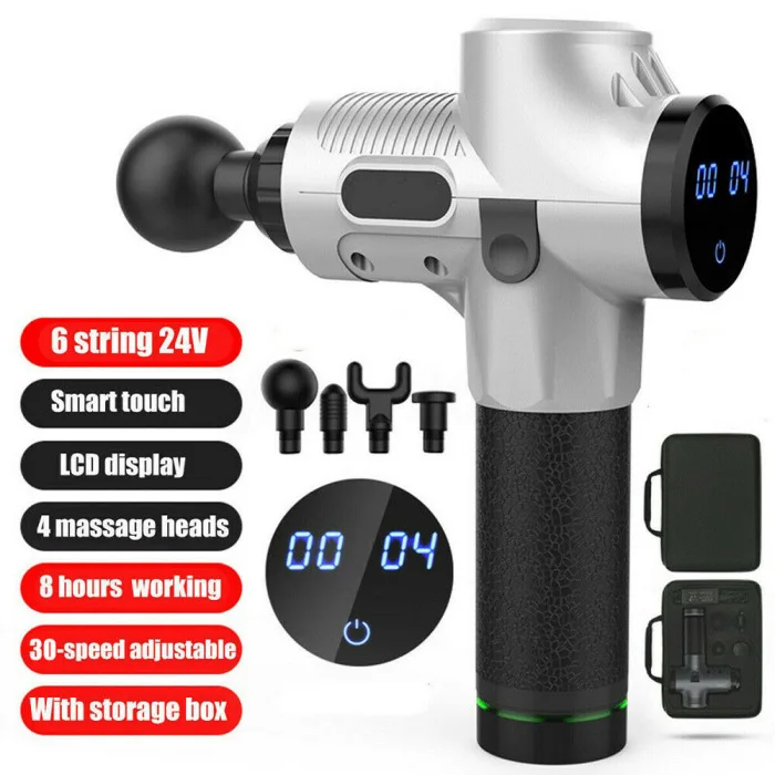Перкуссионные массажные пистолеты инструмент 4 головки 30 Вибратор на несколько скоростей Массажер для мышечной терапии тела Упражнение боли в мышцах облегчение фигуры