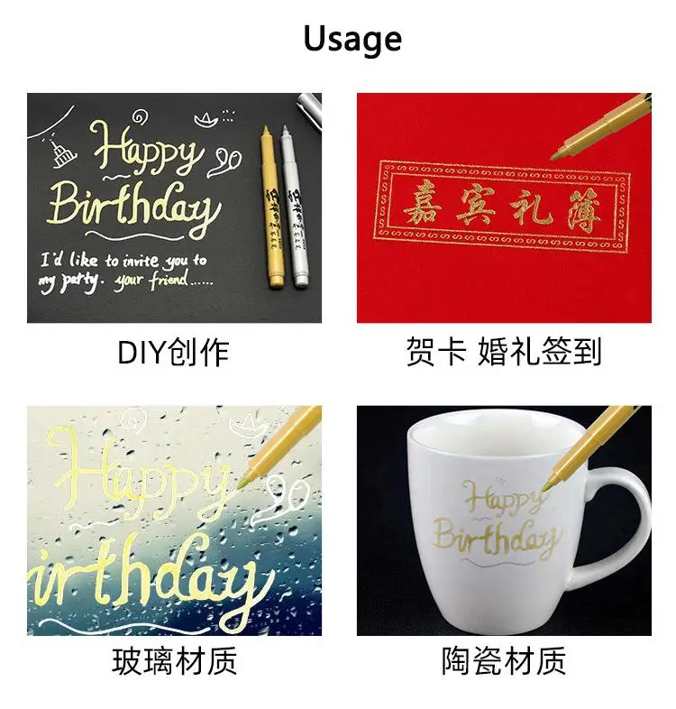 Применение: Подпись, маркировка, поздравительная открытка, стекло, керамика и т. Д.