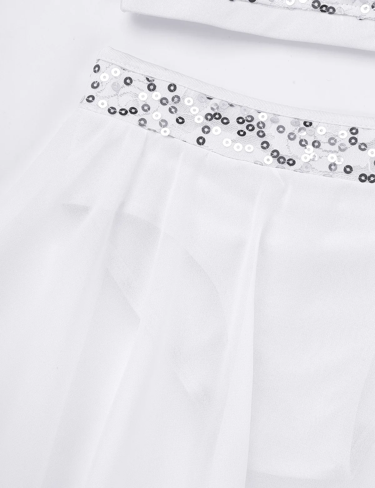 Эффектная шифоновая юбка с глубоким подолом и эластичной резинкой на талии. С пришитыми трусиками. Красивая и модная Одежда для танцев для вашей девочки.