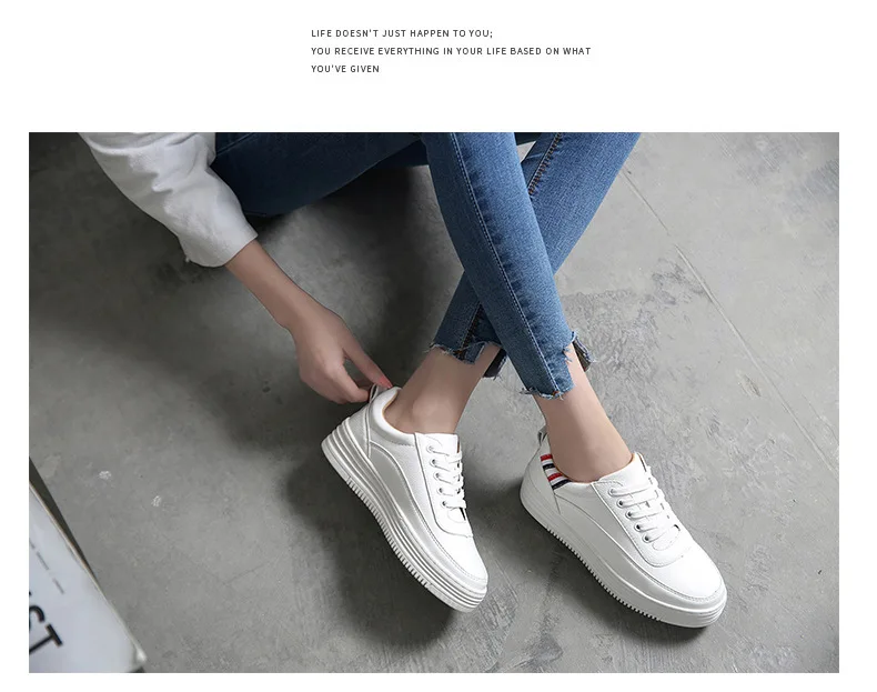 Женская обувь на плоской подошве, белые кроссовки на платформе, Повседневная дышащая обувь на шнуровке, y51, весна 2019