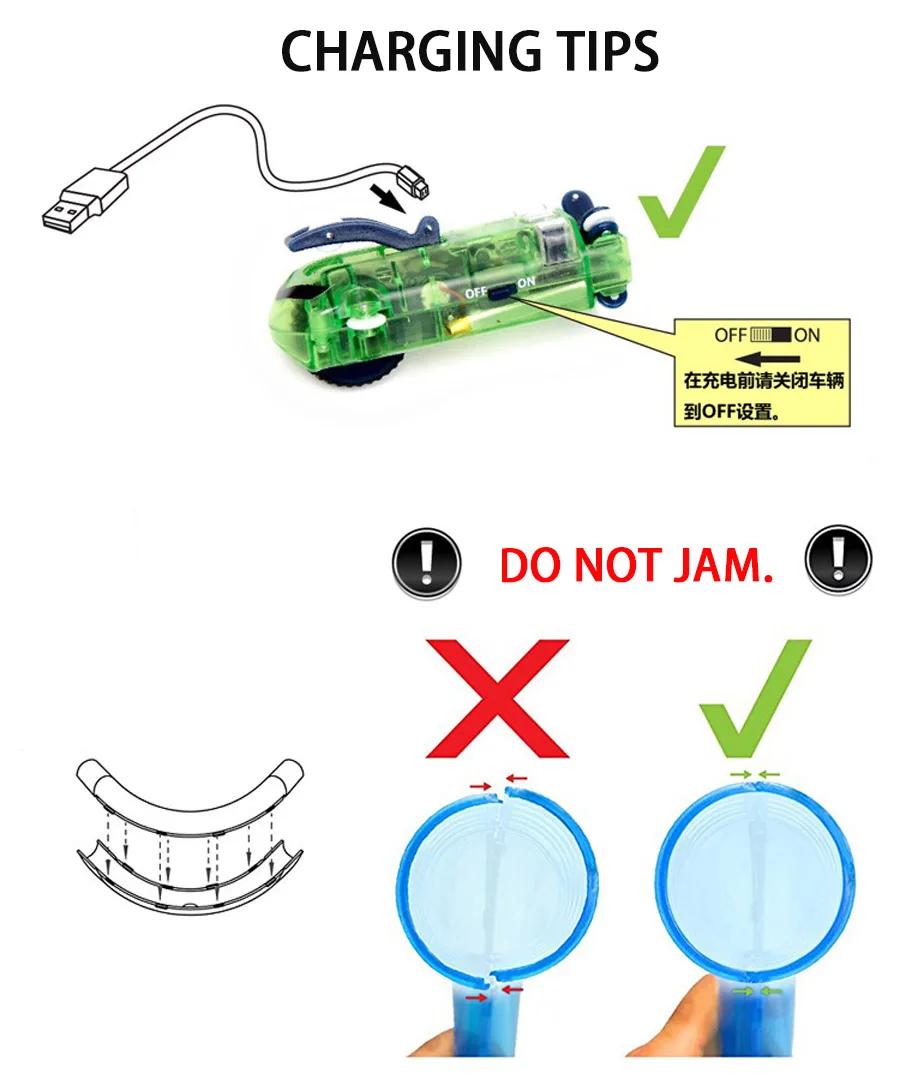 Изогнутые трубы должны быть точно собраны, чтобы транспортное средство могло правильно работать в ваших трубах. Будьте осторожны. Выровняйте все кронштейны со всеми слотами перед установкой. Перед зарядкой выключите транспортное средство.