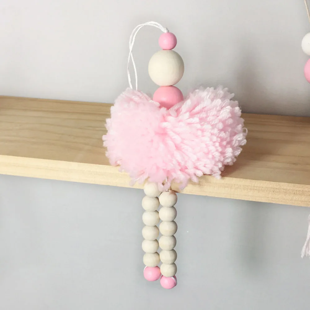 Деревянный колышек в скандинавском стиле для девочек, декор для детской комнаты, украшение для снов, деревянные бусины, розовые украшения для девочек, реквизит для фотосессии 35