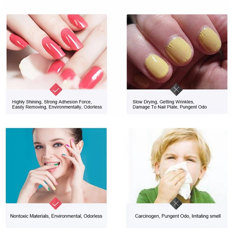 3. Поскольку некоторые цвета очень легкие, пожалуйста, нанесите гель для ногтей, затем вы можете увидеть правильный цвет, такой же, как описание.