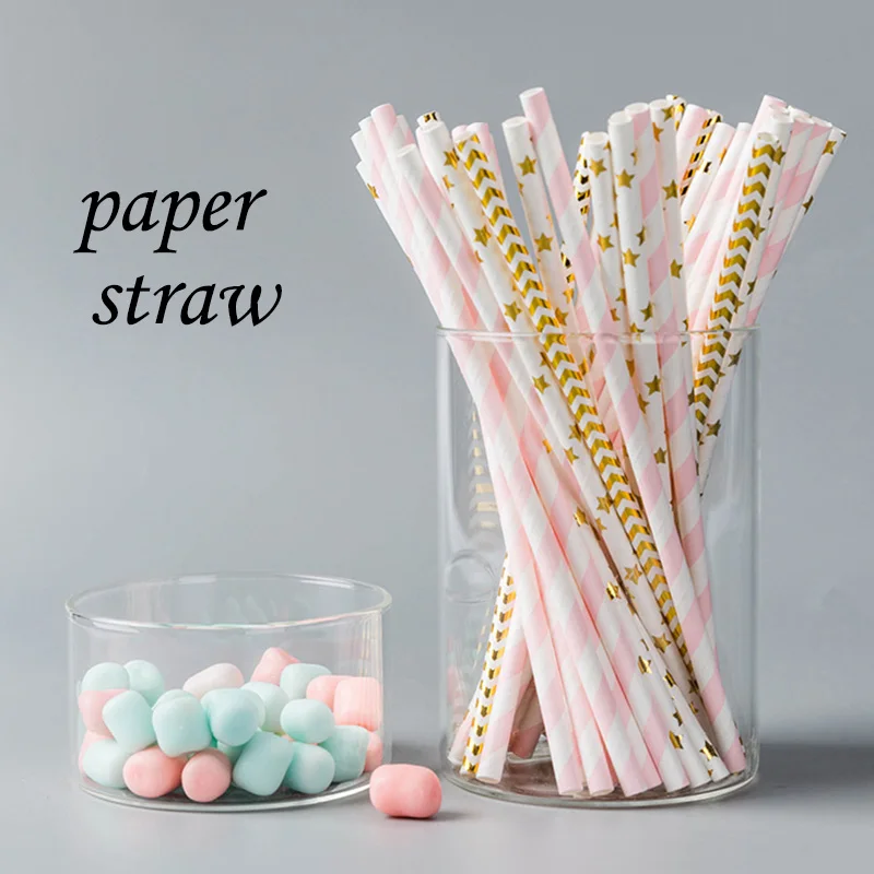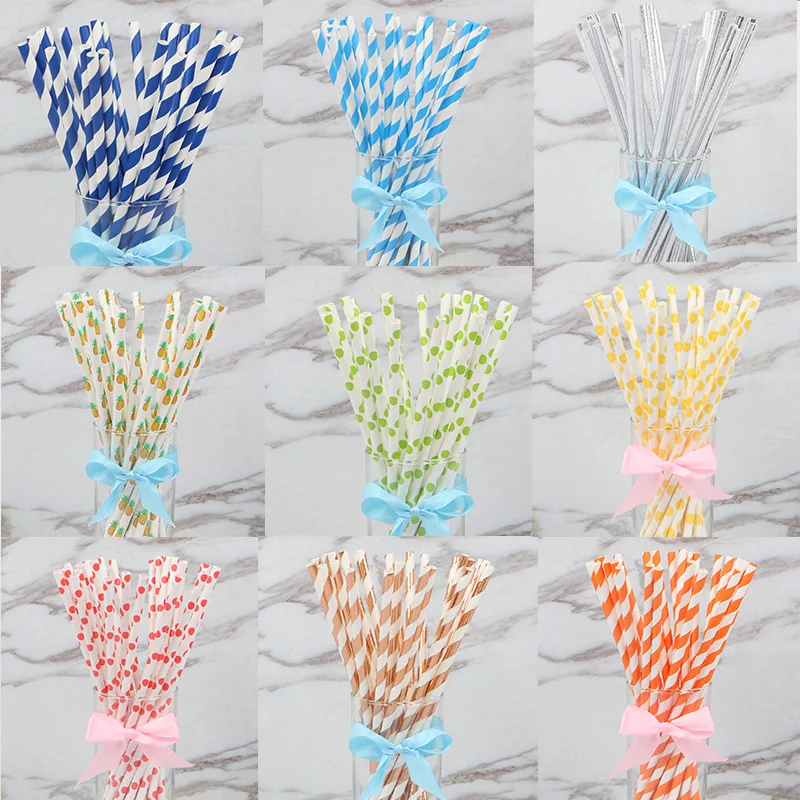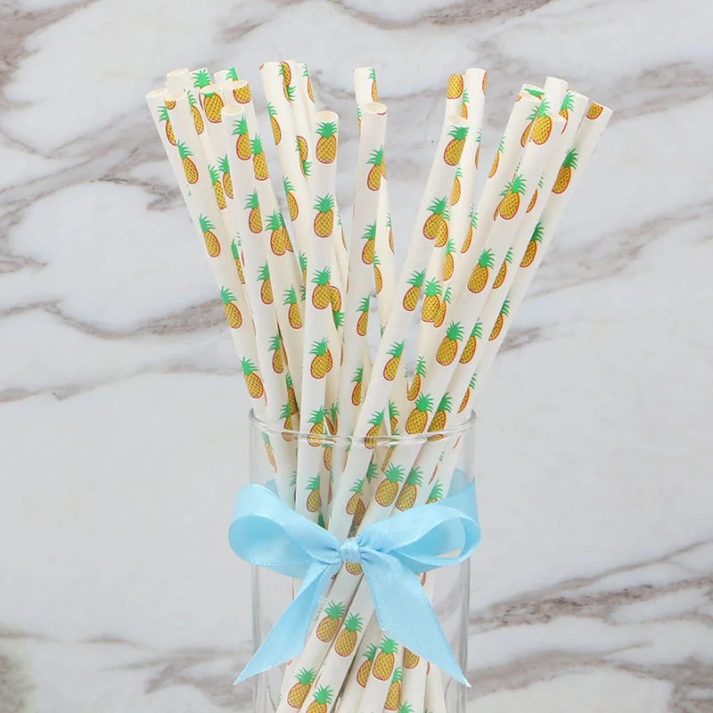 25 шт фруктовый узор бумажная соломинка для питья вечерние летние Полосатые Соломенные рождественские украшения для детского душа вечерние принадлежности