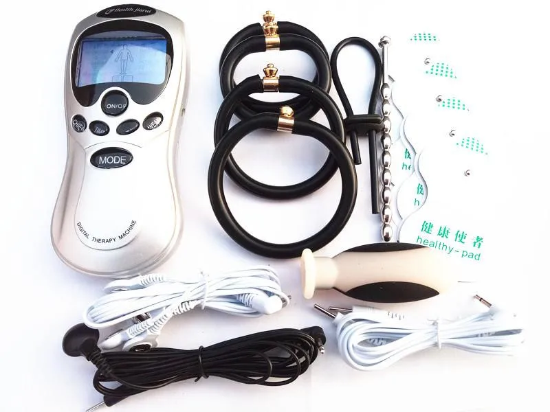 Секс-игрушки для парБДСМ Связывание шестерни электрический импульс шок Петух Кольцо уретры анальный штекер Estim устройство для стимуляции
