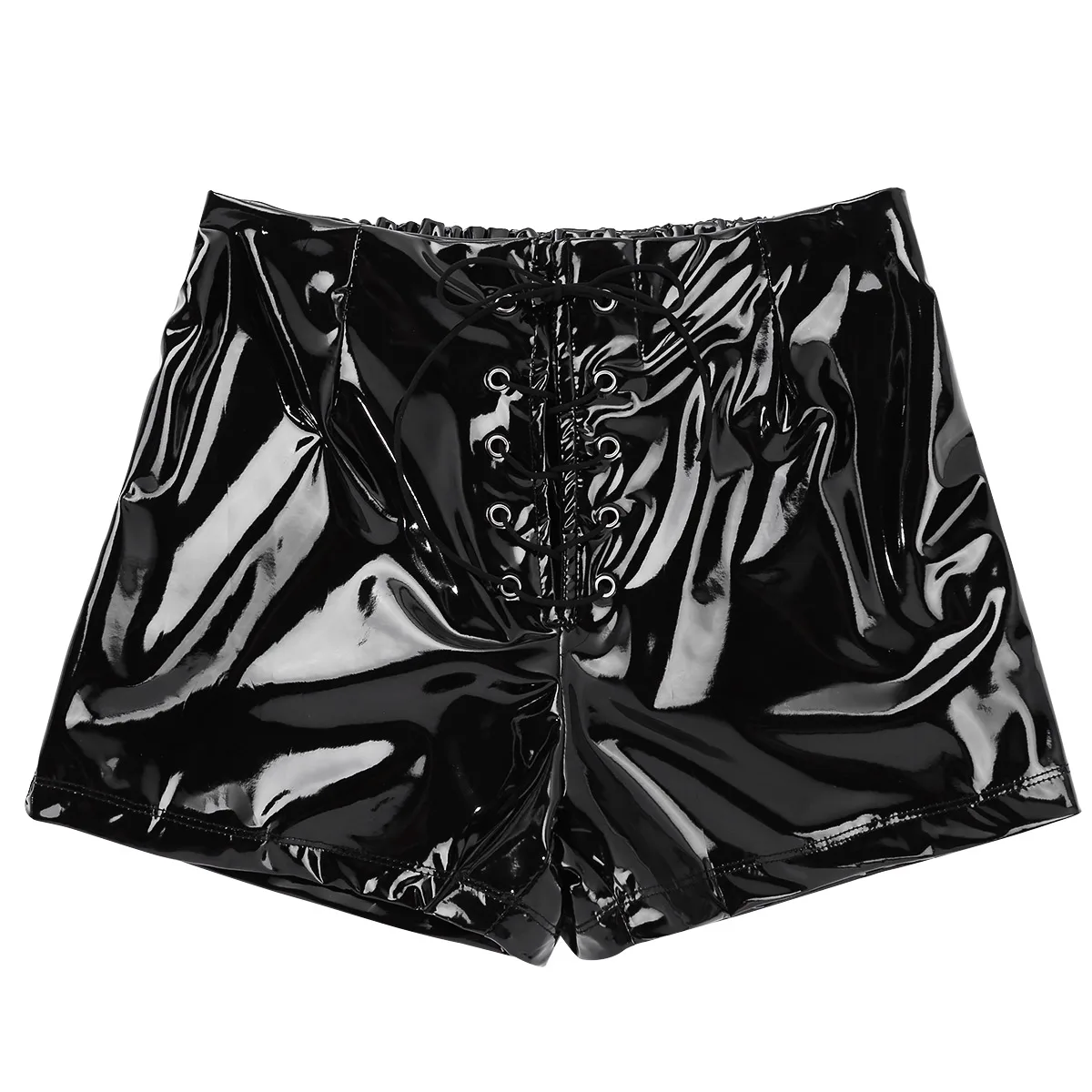 Женские обтягивающие шорты из искусственной кожи с эффектом мокрого вида; популярные шорты для танцев; Клубная одежда; Облегающая посадка.