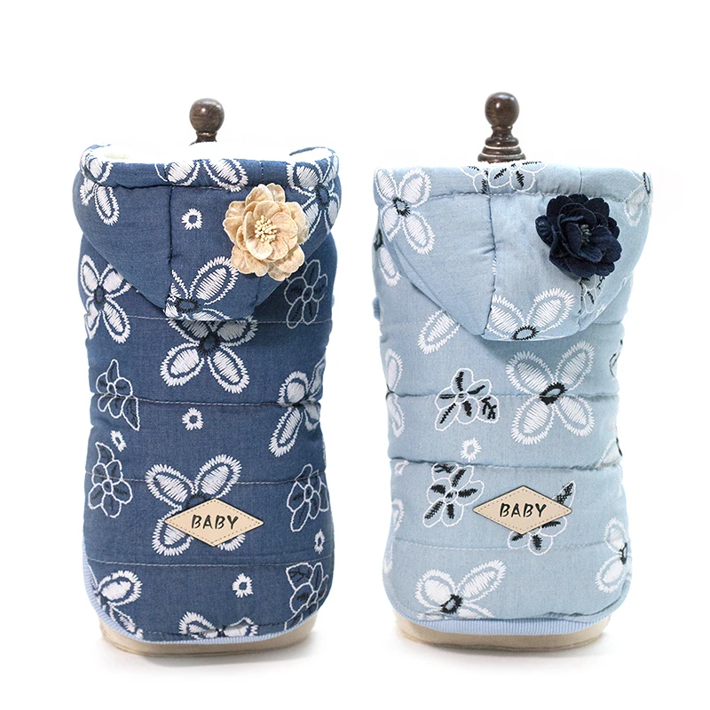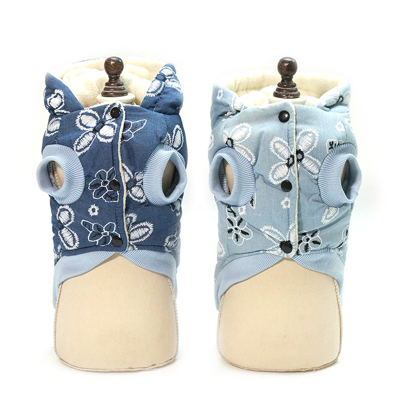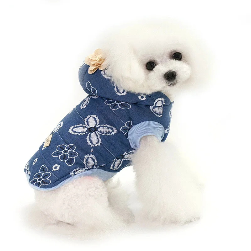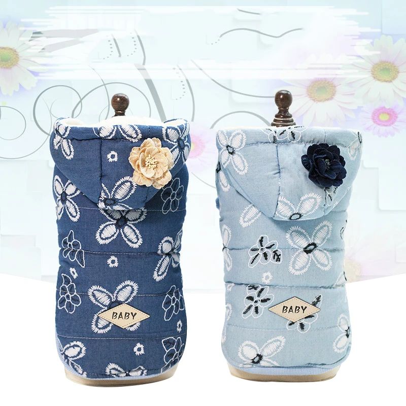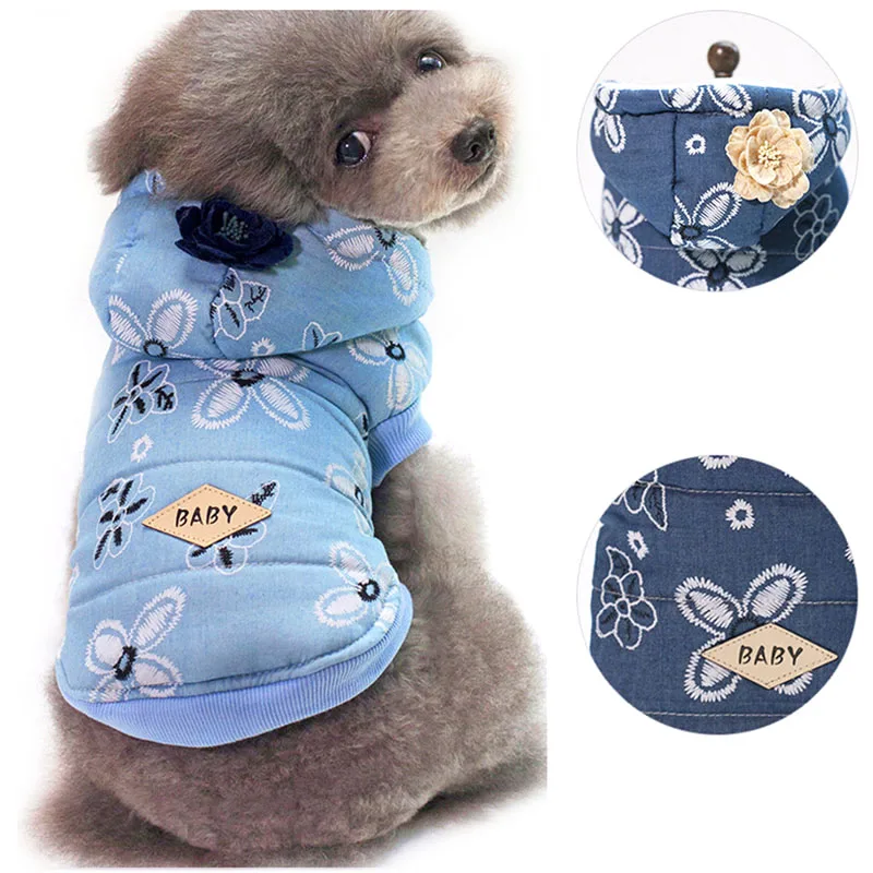 2018 плюшевый медведь для домашних собак Дамская джинсовая куртка wПлюшевое пальто на руку; осенняя и зимняя одежда для домашних животных
