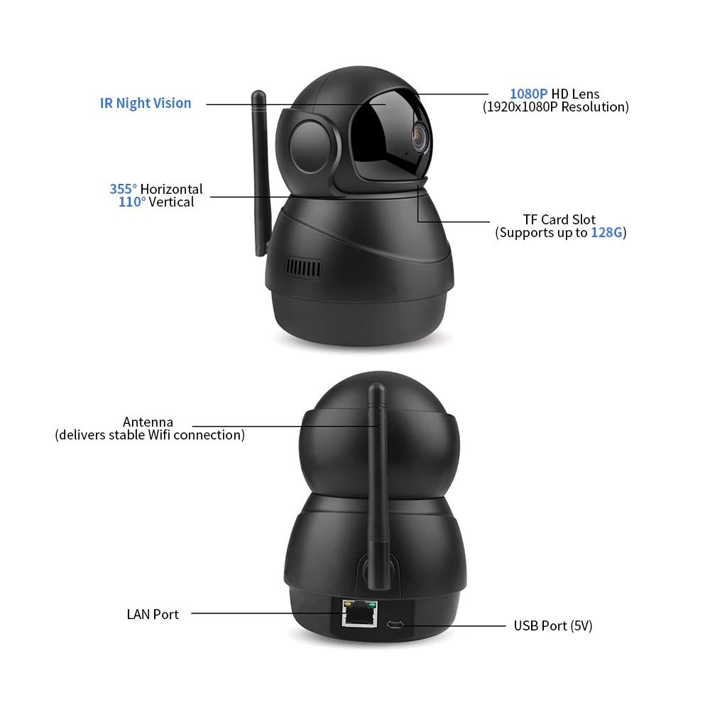 Особенности: Стабильное подключение WIFI. Легкая и быстрая установка и стабильной 2,4 ГГц WI-FI соединение для IP камеры. Разрешение 1920*1080. Разрешение 1920*1080 и пиксель 2 МП обеспечивают высокое качество и четкие изображения и видео. Двустороннее аудио. Встроенный микрофон и динамик и технология защиты от шумов, свободный Звук позволяет вам утешить любимого человека. Вы можете четко общаться друг с другом, когда захотите. Улучшенное ночное видение. 9 шт. ИК-светодиодов расширяют расстояние обзора в темноте, чтобы обеспечить вам супер ночное видение. Дневное и ночное наблюдение, 24 часа для защиты вашего дома. Интеллектуальное обнаружение движения. Во время движения монитора Wi-Fi камера отправит уведомление на ваш мобильный телефон, чтобы предотвратить вторжение в ваш дом. Поставляется со слотом для tf-карты. Внешний слот для tf-карты очень удобен для вставки tf-карты, которая не входит в комплект, а устройство для хранения tf-карт поддерживает до 128 ГБ. Характеристики: Товар: ip-камера Разрешение: 1920*1080P Пиксель: 2MP Сенсор: 1/2.7 "CMOS сенсор 2-полосная аудио: Поддержка Угол поворота: горизонт: 355 °, вертикальный: 110 ° Инфракрасная лампа: 9 шт. ИК-светодиодов IR-CUT фильтр: автоматический переключатель Wi-Fi: 2,4 ГГц (IEEE802.11b/g/n) Мобильный телефон: для Android/iOS Слот для tf-карты: до 128 г (не входит в комплект) Цвет: черный Двойной поток: 12 кадров в секунду (ночь)-25 кадров в секунду (день) Размер камеры: прибл. 13*8,5 см/5,1*3,3 дюйм (ов) Вес камеры: прибл. 242g/8,5 oz Приложение: IPC360 Размер посылка: около 16,5*10*9,5 см/6,5*3,9*3,7 дюймов Вес посылка: прибл. 379 г/13,4 унций Посылка включает: 1 * ip-камера 1 * основание 1 * пакет крепежных винтов 1 * кабель