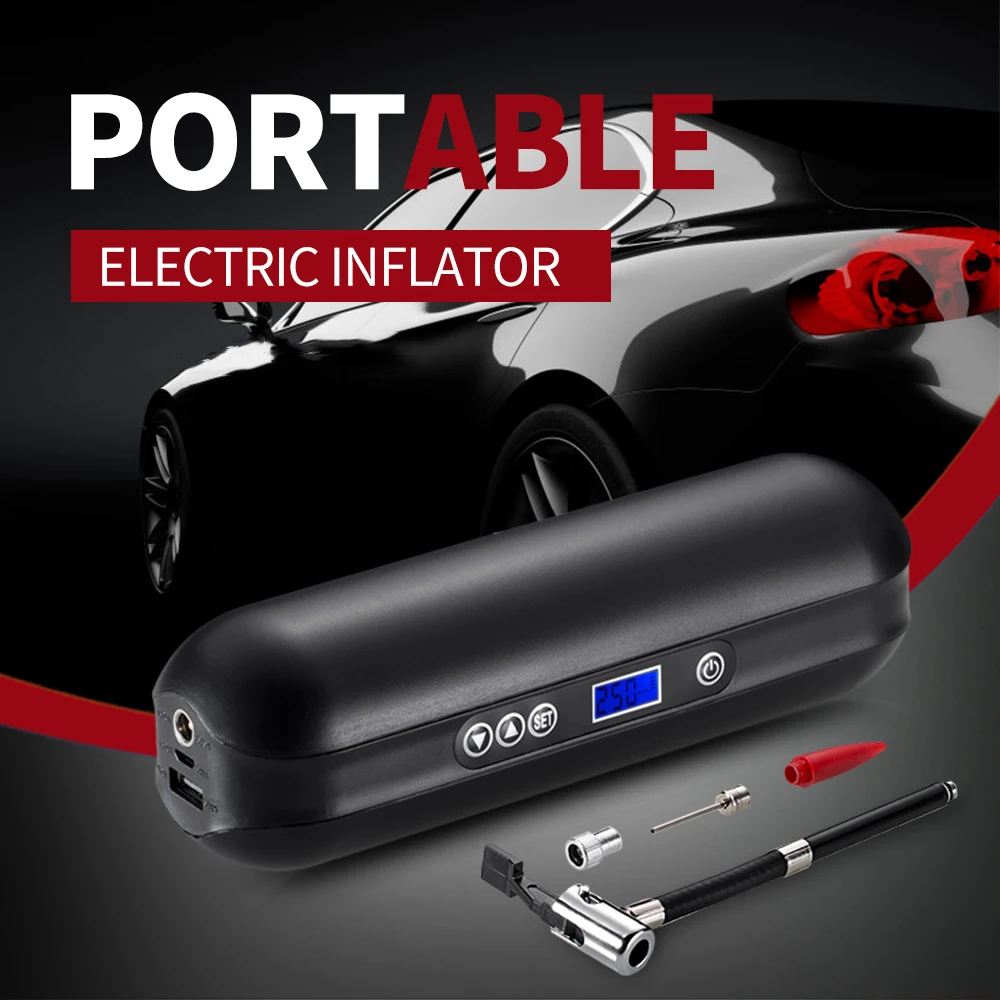 Portable Air Compressor Car Bicycle Toy Airbed Mini Compressor With Tyre Pressure Gauge LED Light 4 Unit Options 5V 5A 150 PSI