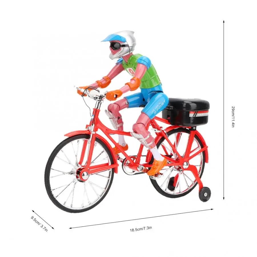 3. Когда велосипед движется вперед, ноги кукольного человека такие же, как настоящие, катаются на велосипеде назад и вперед.