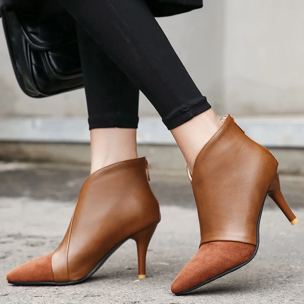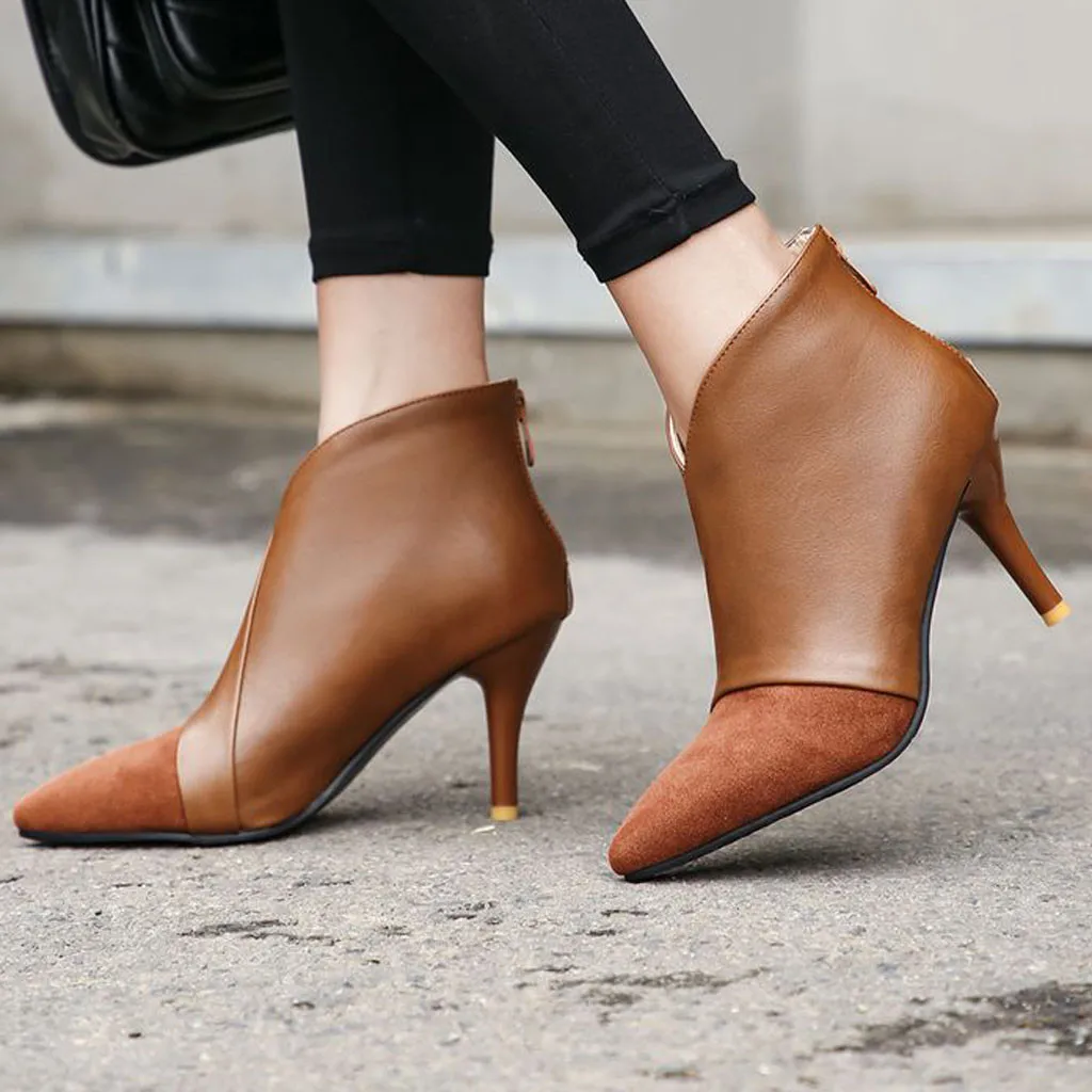 Женские ботильоны; обувь на тонком каблуке; повседневные короткие модные ботинки на молнии с пряжкой