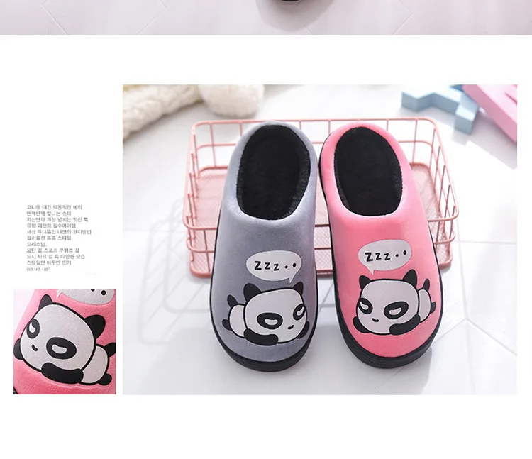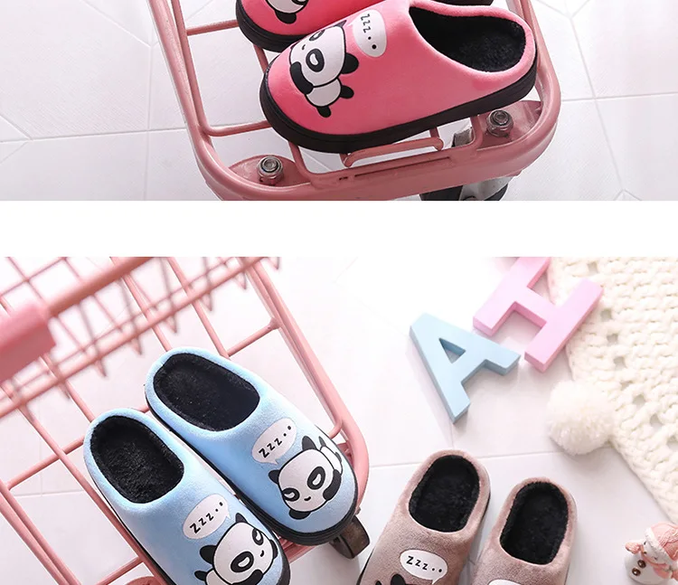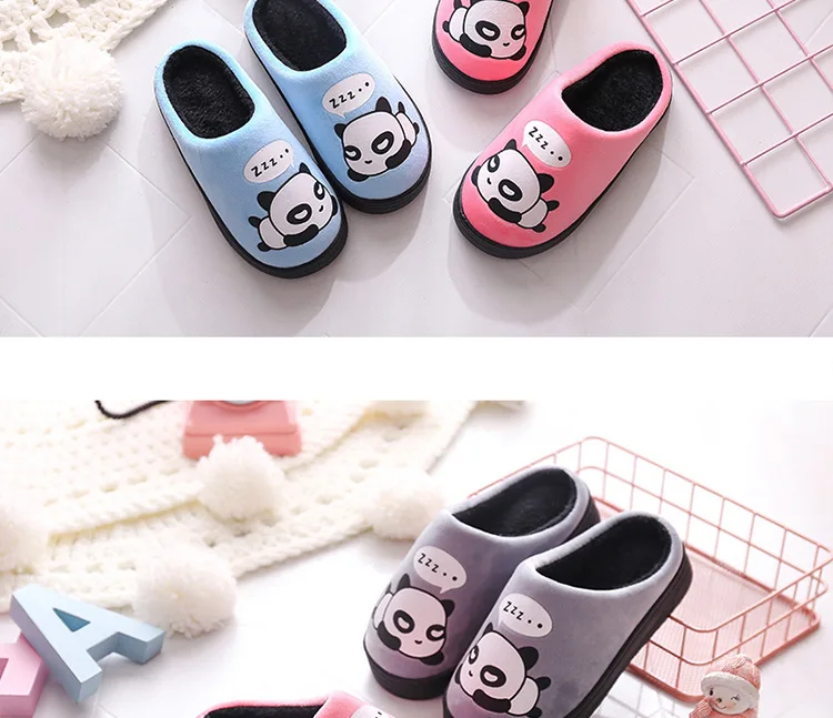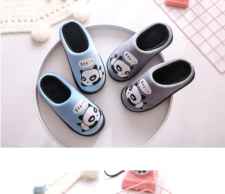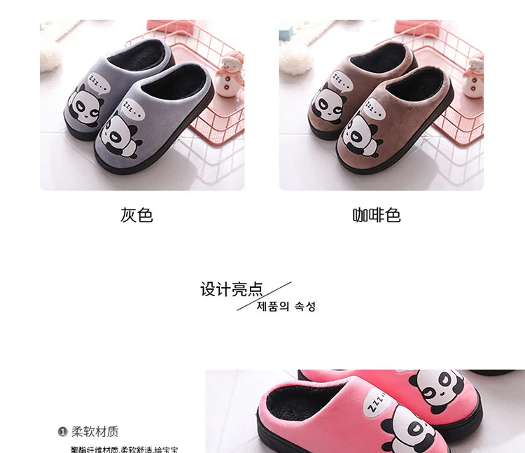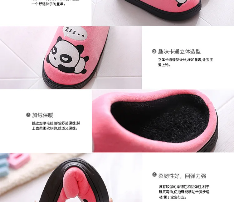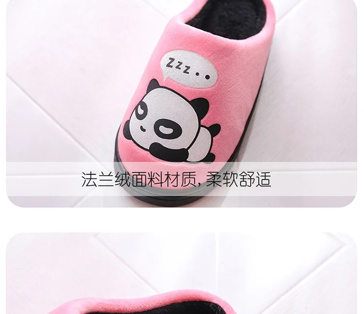 Зимние Детские домашние тапочки; Домашняя обувь; Теплые детские Вьетнамки для мальчиков; Плюшевая бархатная повседневная обувь с рисунком панды для маленьких девочек