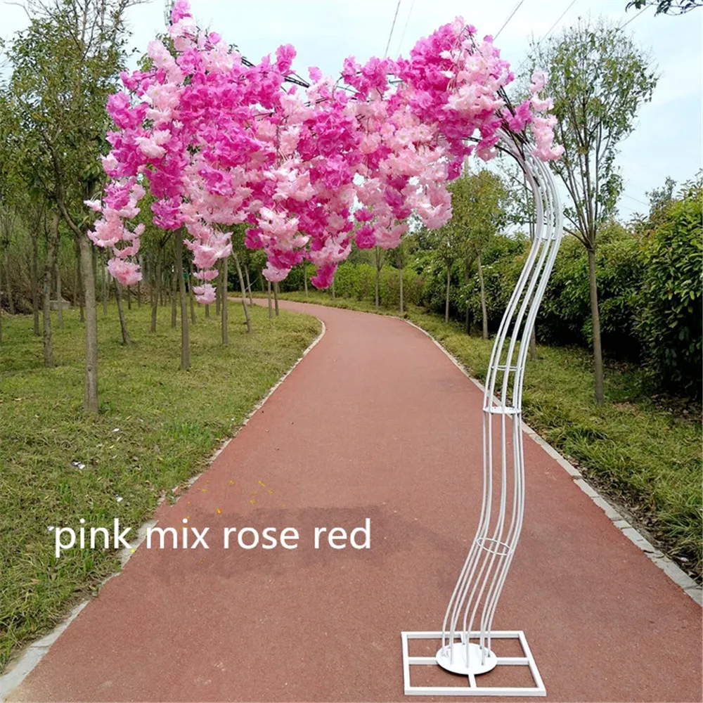 2,6 M Высота белая вишня в цвету дерево дорога с железная Арка Рамка Свадебные настольная дорожка проход Колонка покупок украшения для торговых центров