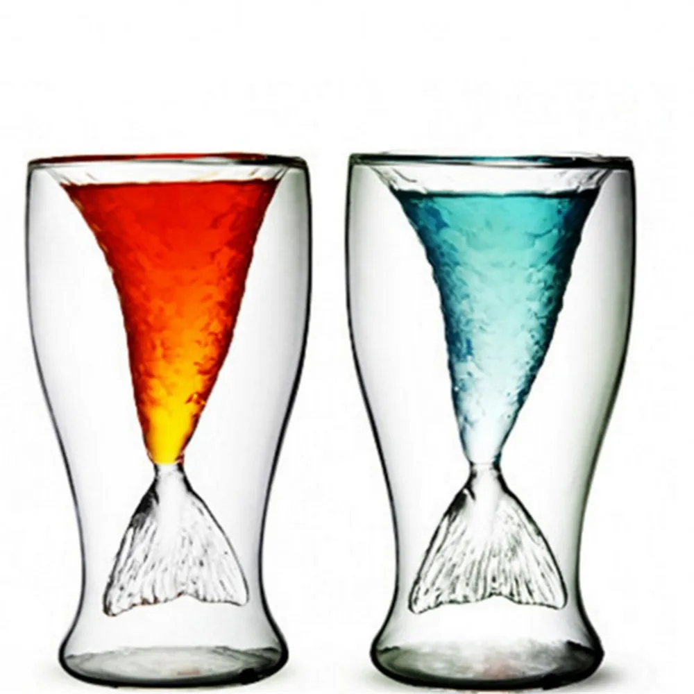 Креативная стеклянная чашка для ликера с русалочкой, двойной бар, вино, пиво, коктейльное стекло, подарки, зеленый бессвинцовый рыбий хвост 101-200 мл