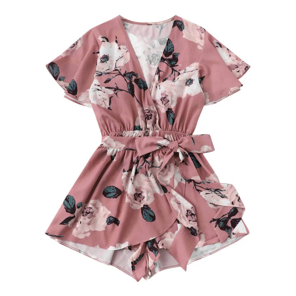 Bohemian Women's Shorts Jumpsuit V-Neck Bow Tie Ladies Summer Floral Print Casual Romper Combinaison Short Femme 2019 New Y Features: 1.It is made of high quality materials,durable enought for your daily wearing 2.This Stripe design Dress and will steal your heart! Chic and comfy, you can't go wrong with this amazing cute top! 3.Great for party,Daily,I am sure you will like it! Product information: Season:autumn,Summer Gender:Womens Occasion: Party,Daily Material:Polyester Pattern Type:Floral Print Style:Sexy Tops length:Regular Fit:Fits ture to size How to wash:Hand wash Cold,Hang or Line Dry What you get:1PC WomenRomper+1PC Belt