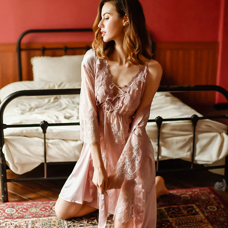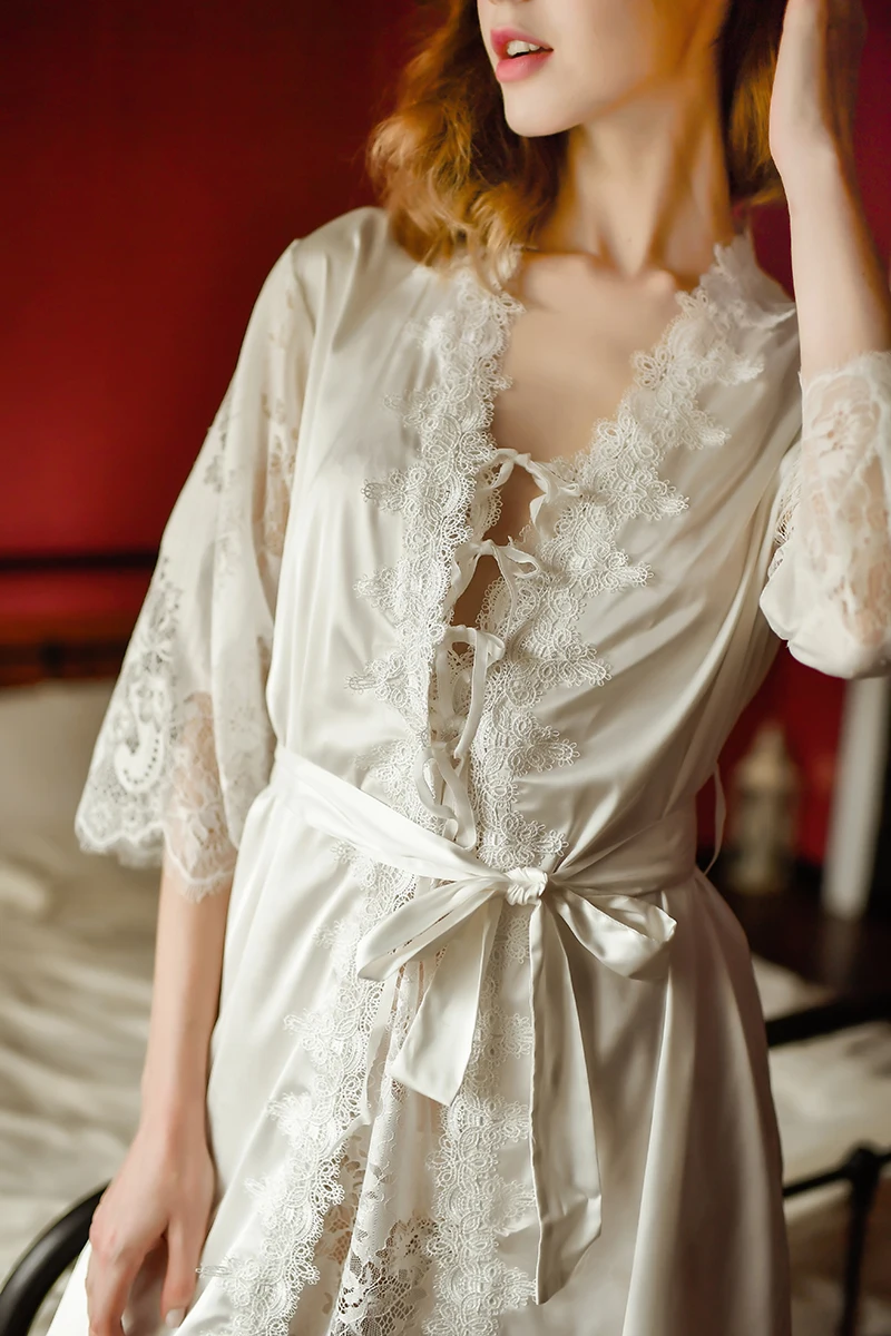 Халат: длина: 81 см, длина рукава: 48 см, Длина пояса: 180 см Платье: 88 см, талия: 62-100 см, талия трусов: 54-74 см, длина паха трусов: 23 см