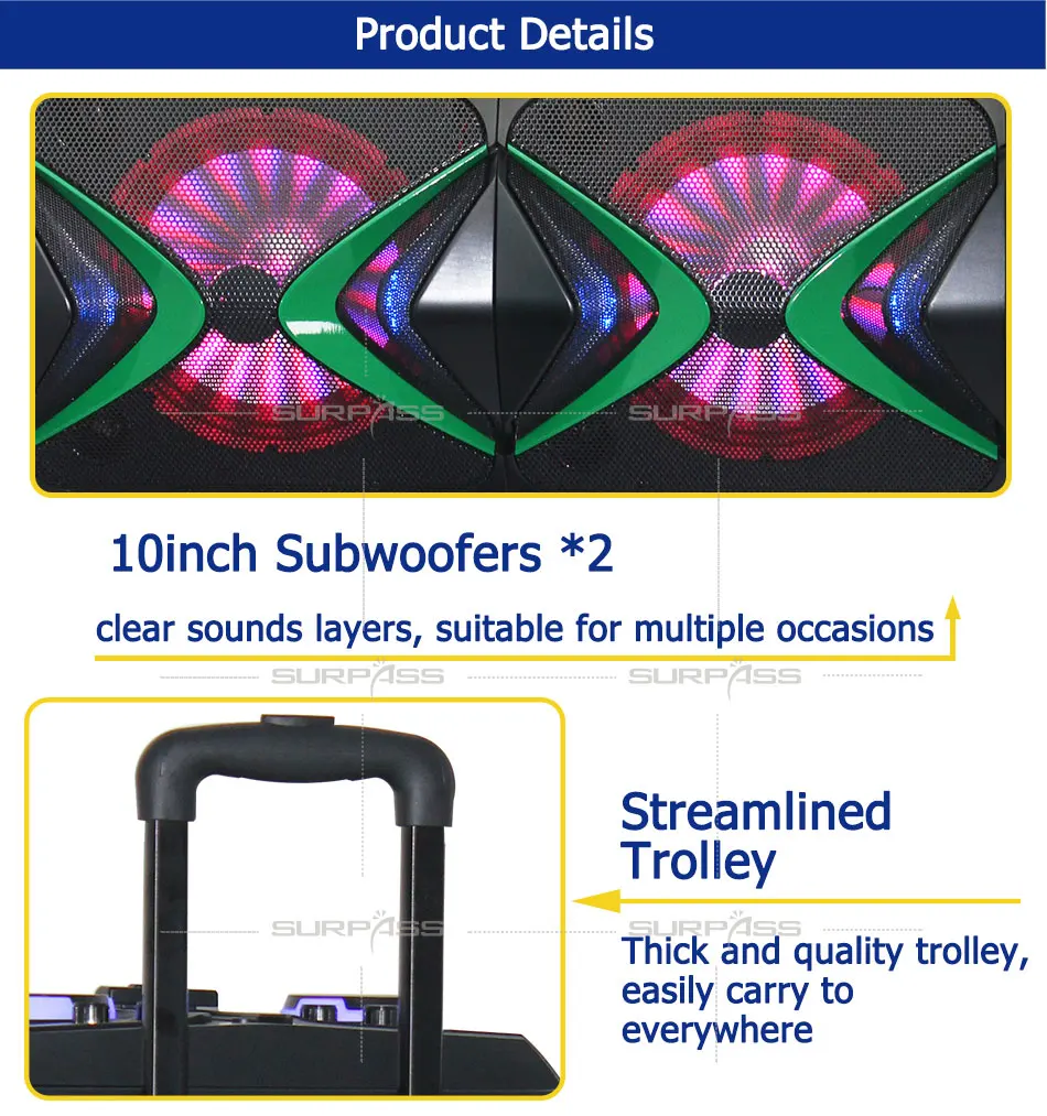 Портативный Водонепроницаемый Открытый вечерние музыка большая мощность караоке динамик активный усилитель звука аудио двойной 10 ''сабвуферы светодиодный светильник