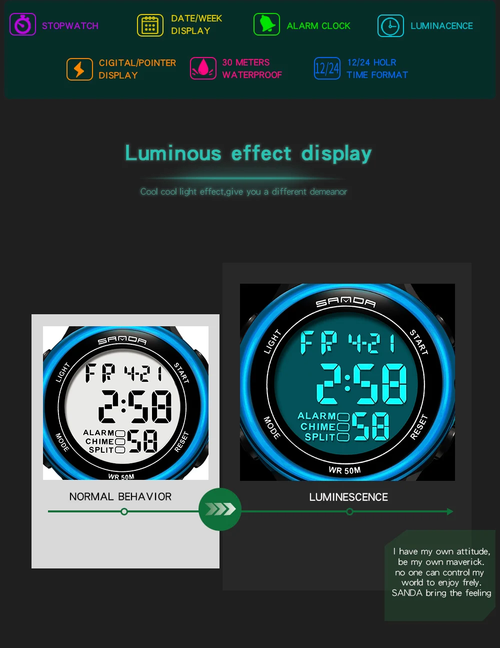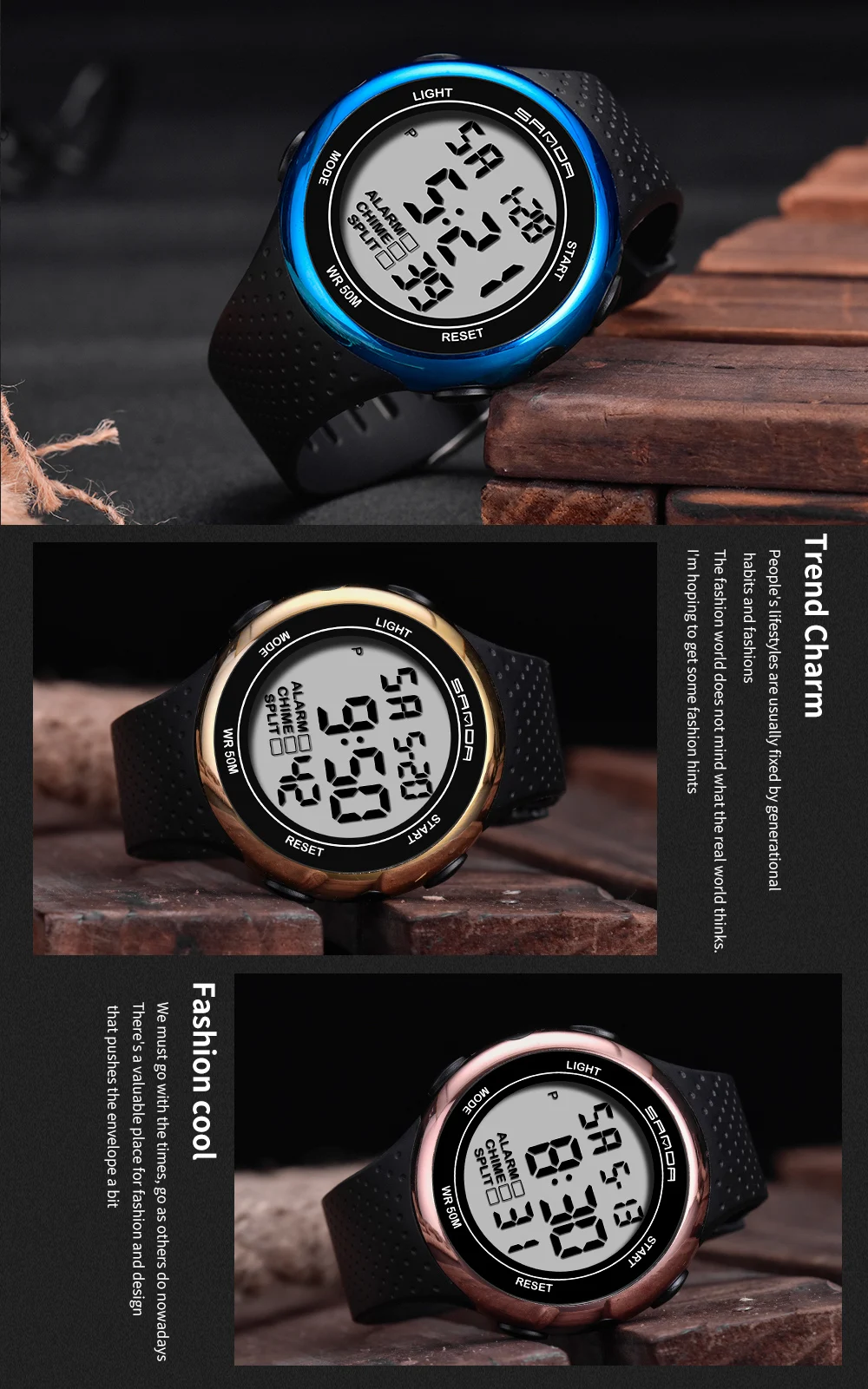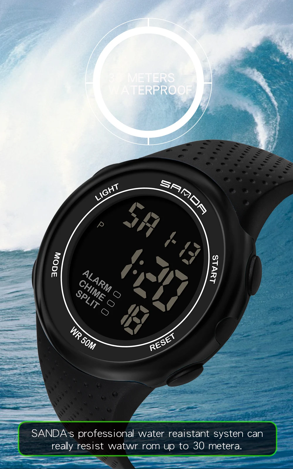 Марка: Sanda Модель: 375 Специальные функции: световой сигнал, Будильник, хронограф, календарь, индикация 24 часа, отображение недели, отображение месяца Тип дисплея: Цифровой Для чего подходит этот товар: Мужской Стиль: Повседневное Водонепроницаемость: 50 м Тип часового механизма: электронный Движение происхождения: Япония Модель движения: 2016 Марка движения: Япония Диаметр циферблата: 46 мм Толщина: 12,5 мм Тип короны: плоская конусная Корона Тип нижней части стола: Обычный Материал зеркала: минеральное укрепленное стеклянное зеркало Стиль застежки: Пряжка Материал пряжки: нержавеющая сталь Материал ремешка: Резина Форма циферблата: круглый Чехол Материал: смола Цвет: черный, черный, серебристый, черный, красный, черный, синий, черный, золотой, черный, розовое золото