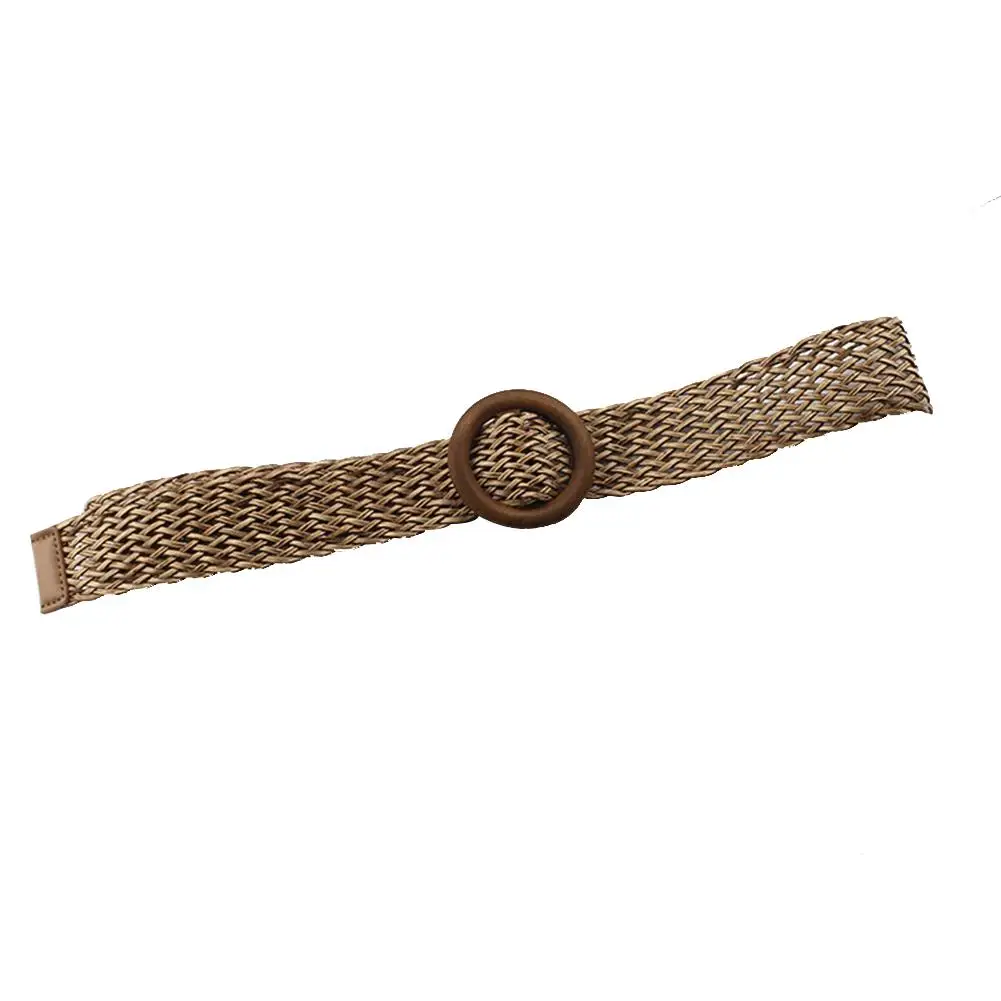 Женский плетеный ремень для женщин круглая деревянная Пряжка дизайнерский поясной ремень женский черный белый Бохо панк поддельный соломенный пластмассовый пояс